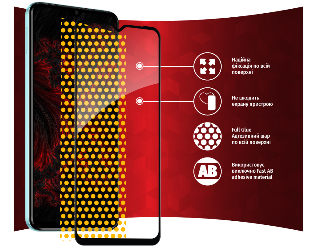 - Клеевой слой нанесен на всем стекле, благодаря чему обеспечивает надежную и сильную фиксацию всего стекла, а не только его краев. При необходимости такое стекло можно легко снять без риска повредить экран или его покрытие