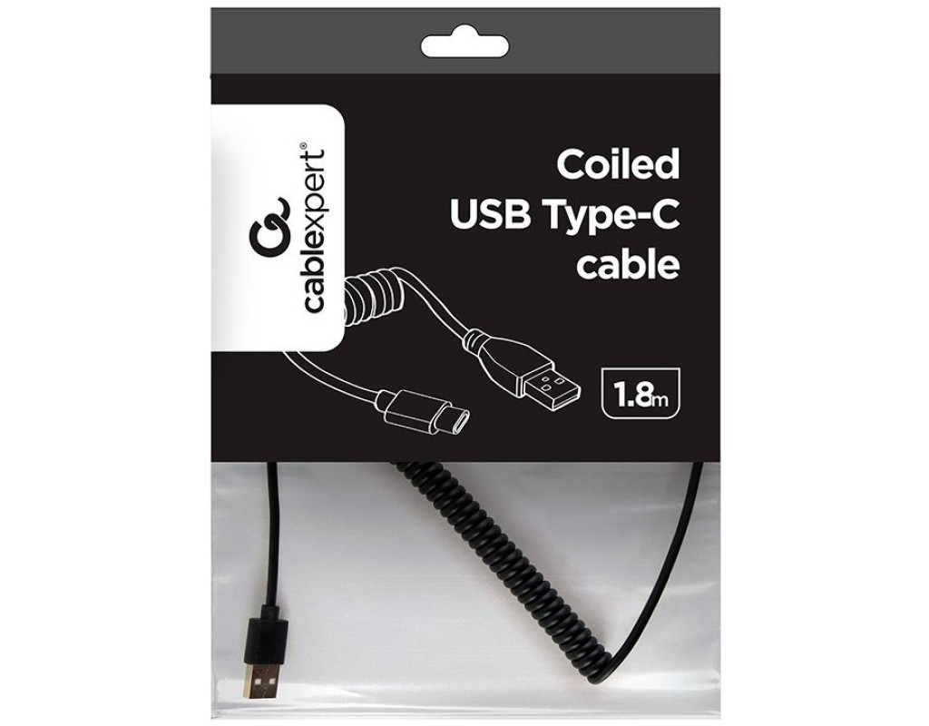 Тип - кабель, Тип коннектора 1 - USB 2.0 (AM), Тип коннектора 2 - USB Type-C, длина - 1.8 м, позолоченные коннекторы, Цвет - черный