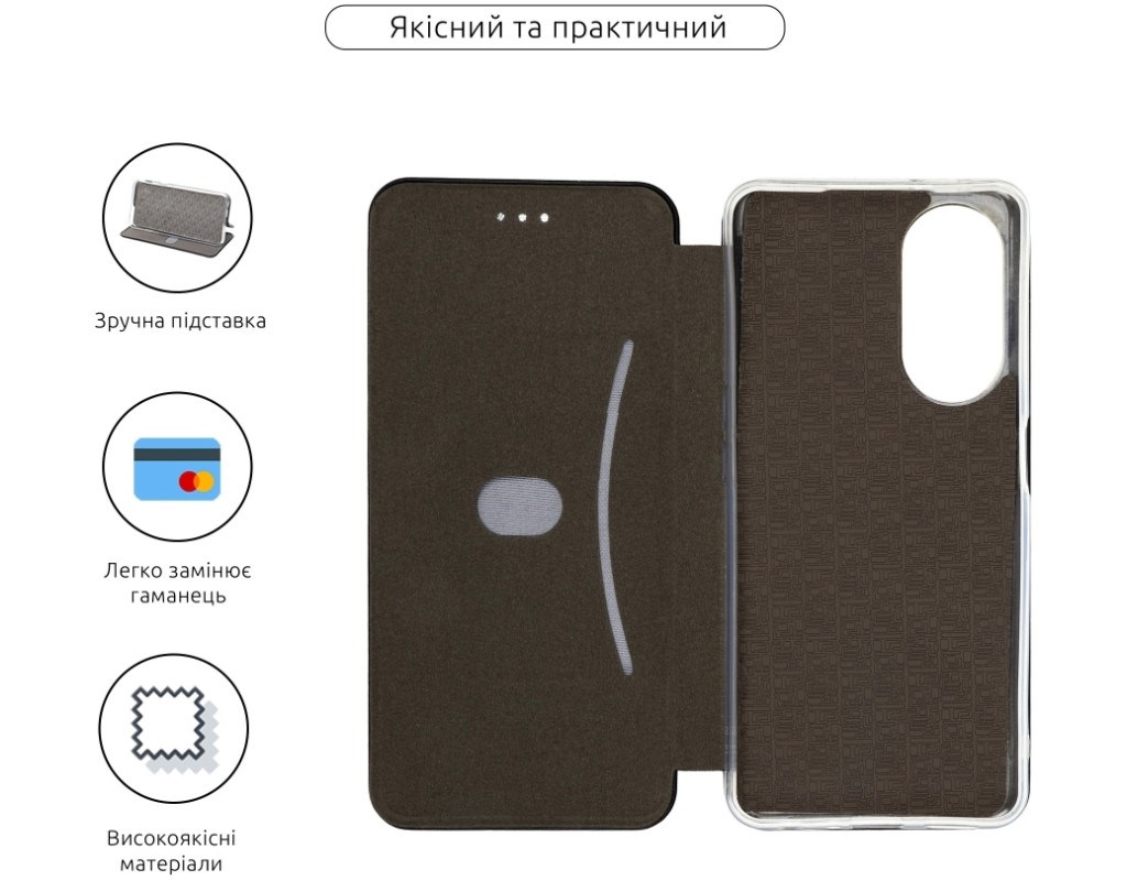совместимость с моделями - OPPO A98, Тип чехла для телефона - книжка, Назначение - модельный, Материал - полиуретан, Цвет - черный