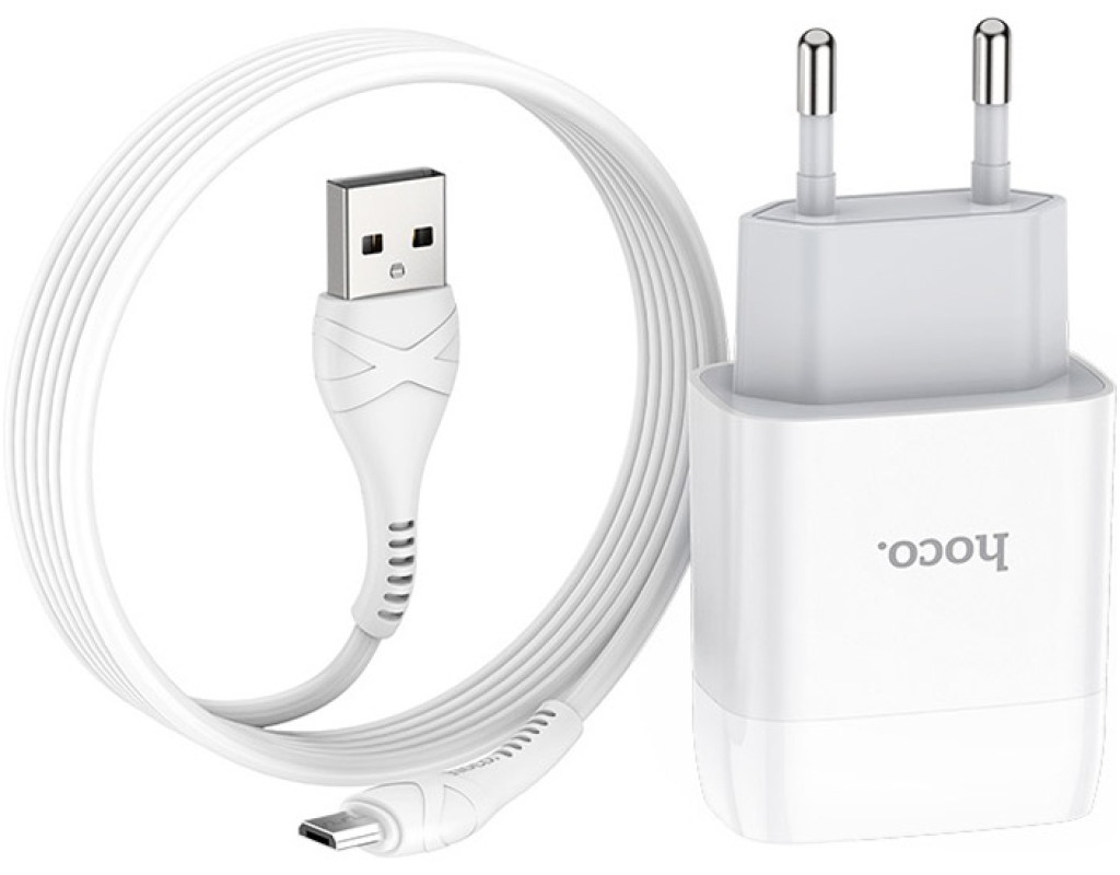 Hoco C72A Glorious single port charger set (Micro) White – набор из зарядного устройства с одним USB-портом и кабелем USB – Micro-USB. Подходит для зарядки большинства устройств – телефонов, смартфонов и планшетов, смарт-часов, повербанков и других. Устройство изготовлено из качественного поликарбоната, принципиальное отличие которого – огнестойкость, что делает устройство безопасным в использовании. Благодаря наличию порта USB и сменного кабеля в комплекте можно заряжать устройства с различными коннекторами. Благодаря компактным размерам устройство можно легко переносить с собой в сумке или рюкзаке, чтобы иметь возможность в любой момент зарядить гаджеты. Особенности: