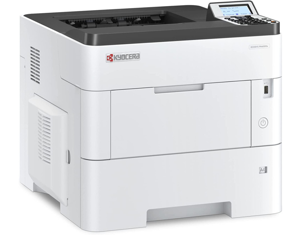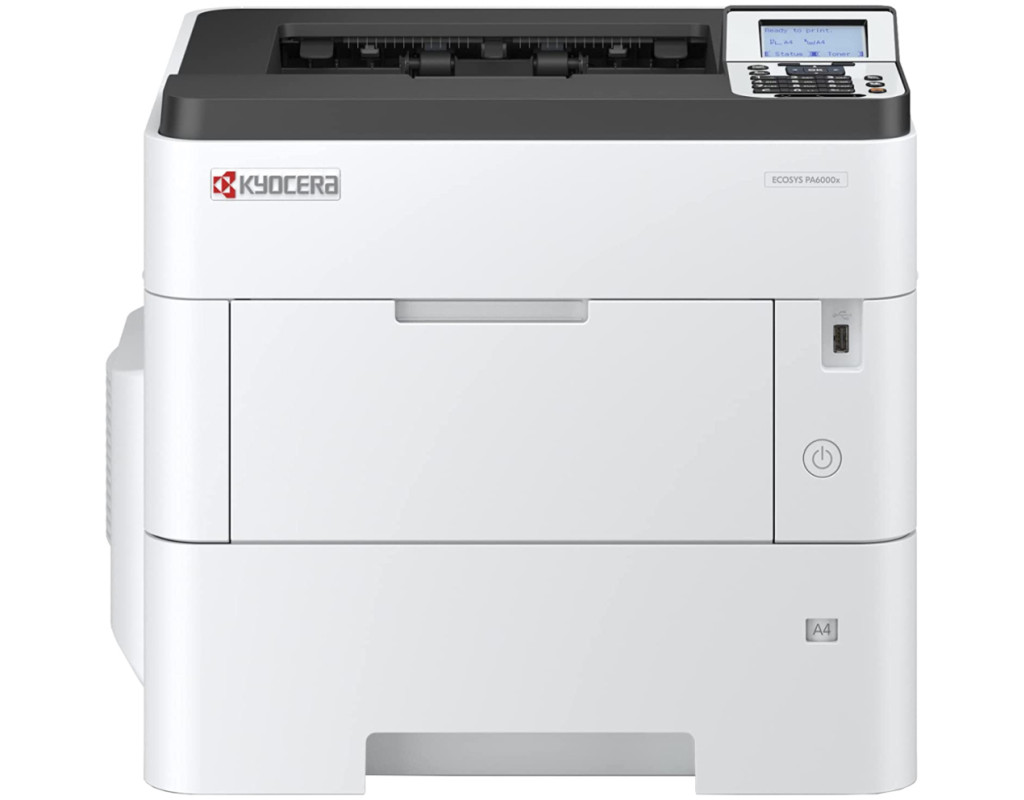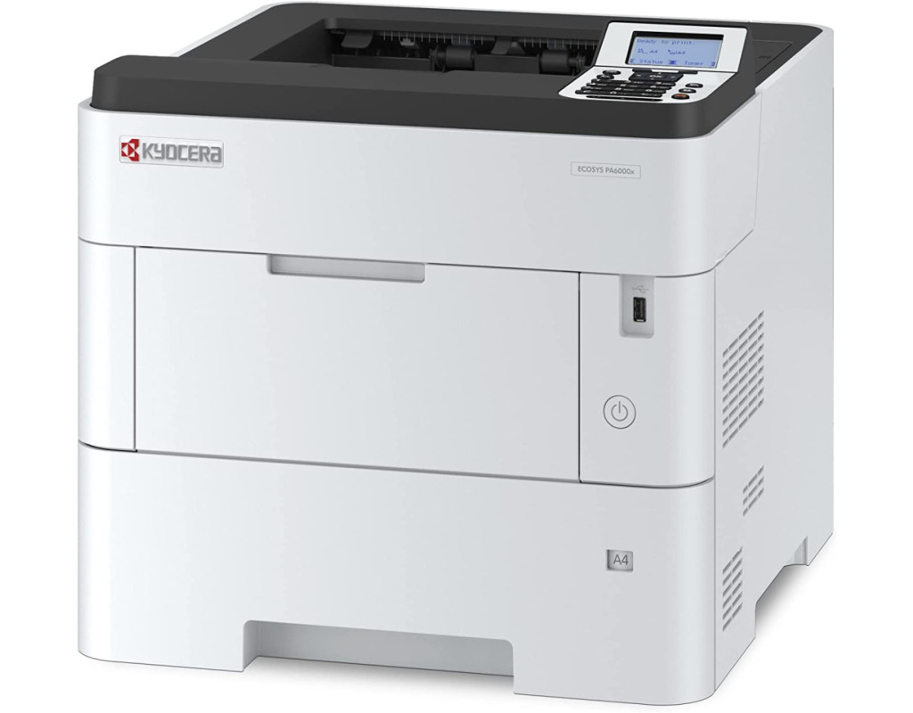 Чорно-білий лазерний принтер А4 формату Kyocera ECOSYS PA6000x забезпечує винятково високу швидкість друку до 60 сторінок на хвилину та час першого друку 4,5 секунди, що гарантує ефективну та надійну роботу в динамічному професійному робочому середовищі. Низька сукупна вартість володіння та інтелектуальні функції безпеки забезпечують більше, ніж ви очікуєте. Професіонали високо оцінють потужний монохромний лазерний принтер Kyocera ECOSYS PA6000x.