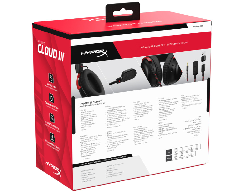 | Наушники HyperX Cloud III Black-Red (727A9AA) представляют собой настоящую находку для геймеров и аудиофилов, стремящихся к абсолютному качеству звука и максимальному комфорту. Эта игровая гарнитура оснащена всеми необходимыми функциями для того, чтобы ваш игровой или рабочий опыт был исключительно приятным. Дизайн HyperX Cloud III, выполненный в элегантной комбинации черного и красного цветов, является не только стильным, но и практичным с точки зрения долговечности. Прочная конструкция с полноразмерными чашками идеально подходит для долгих сеансов использования, а наголовье способствует стабильной фиксации наушников, сохраняя комфорт. Комфорт — это одно из ключевых преимуществ этой гарнитуры. Использование амбушюр из кожзаменителя и пеноматериала с эффектом памяти способствует удобной посадке на голове, уменьшая усталость при длительном ношении и позволяя наслаждаться качественным звуком без какого-либо дискомфорта. Особое внимание уделено акустическому оформлению — закрытый дизайн наушников вместе с поддержкой 7.1 и 5.1 объемного звука создают неповторимый аудиоэффект. Вы можете погрузиться в мир игр с глубоким басом и четкими высокими тонами. Благодаря частотному диапазону от 10 до 21 000 Гц каждый звук будет ярко передан. Проводное подключение осуществляется через USB Type-A и Jack 3.5 мм, что позволяет использовать наушники с широким спектром устройств. Это делает HyperX Cloud III идеальными для подключения как к компьютерам, так и к ноутбукам. Кабель длиной 1.7 метра позволяет свободно двигаться во время игры или работы, не ограничивая ваши действия. Съемный микрофон — это еще одна функциональная деталь, которая повышает удобство использования гарнитуры. Благодаря усовершенствованной технологии шумоподавления ваш голос останется четким даже в шумной обстановке, что особенно важно для командных игр или профессиональной записи звука. Микрофон легко снимается, что позволяет использовать наушники как классическую аудиогарнитуру. Управление основными функциями гарнитуры осуществляется непосредственно на наушниках, что позволяет быстро и беспрепятственно изменять уровень громкости или отключать микрофон. Это особенно удобно во время интенсивных игровых баталий или в процессе творческой работы, когда не хочется отвлекаться на лишние движения. Наконец, HyperX Cloud III имеют вес всего 694 грамма, что делает их чрезвычайно удобными для продолжительного использования. Эти наушники создают впечатление легкости и невидимого присутствия, позволяя концентрироваться на главном — наслаждении качественным звуком. Независимо от того, геймер вы, профессиональный аудиоинженер или просто музыкальный энтузиаст, HyperX Cloud III Black-Red обеспечат незабываемую аудиодорожку благодаря передовым технологиям и изысканному дизайну. |