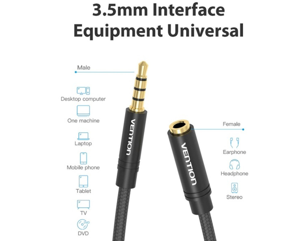 | Кабель Vention Audio 3.5 mm M - 3.5 mm F предназначен для передачи аналоговых стереозвуковых сигналов между аудио, аудио-видео и (или) компьютерными устройствами или их компонентами. Вы можете подключить компьютер (ноутбук), MP3-плеер, или смартфон к гарнитуре, активным акустическим системам и прочей мультимедийной технике. |