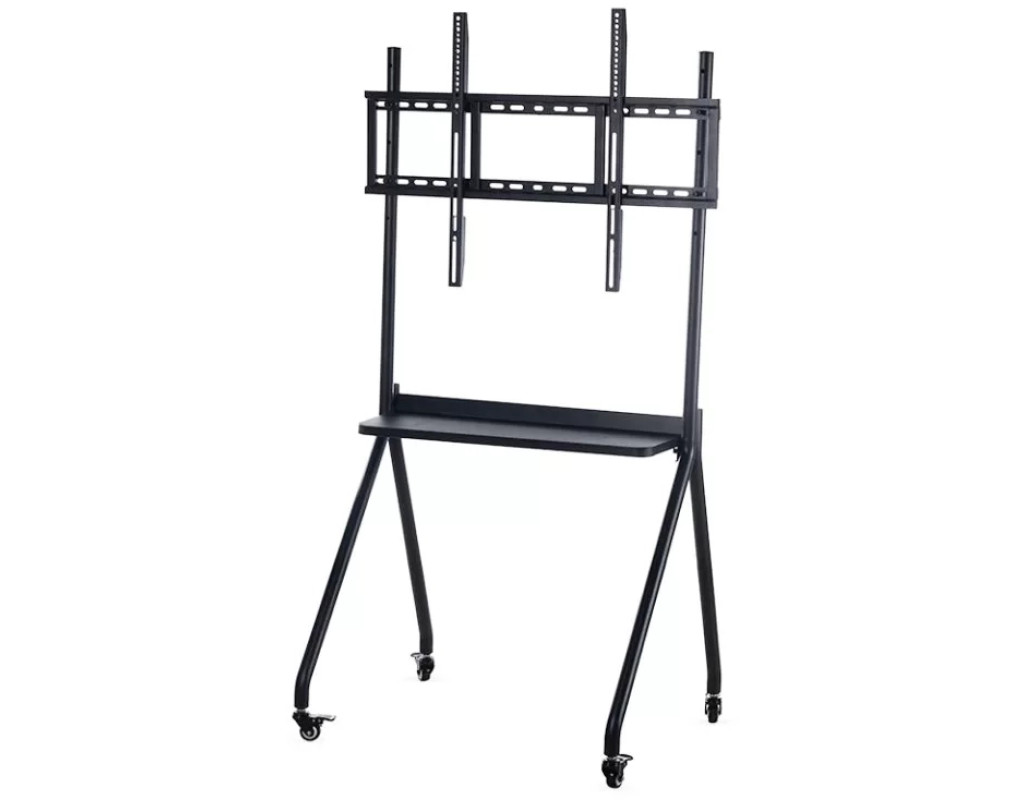 Свобода передвижения сенсорной панели с помощью подставки оборудованной поворотными колесиками для легкой регулировки положения, а также полкой для хранения аксессуаров. |