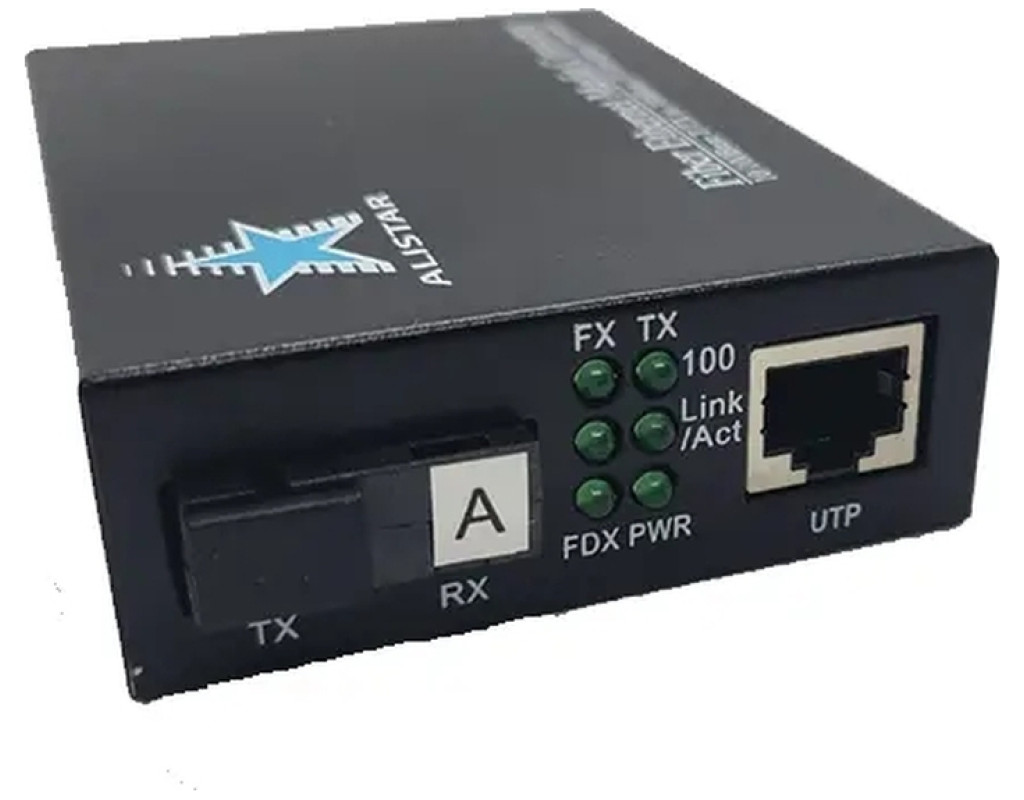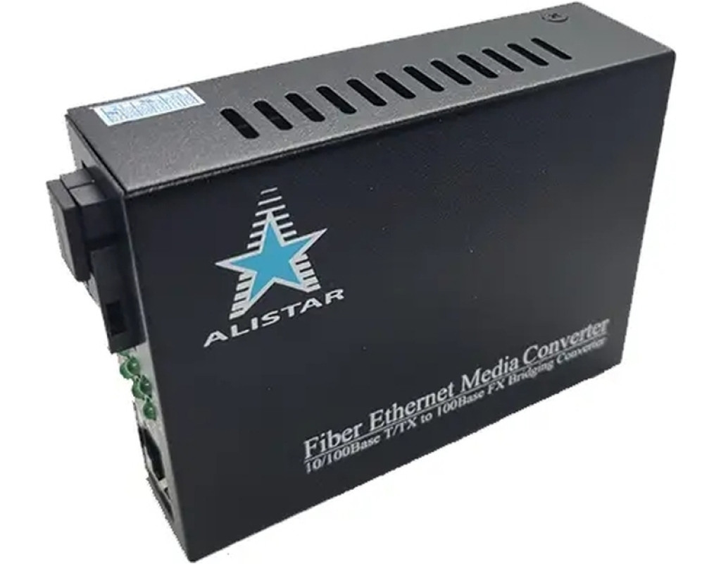 Медиаконвертер Alistar 10/100BASE-T 1SM WDM SC 20KM TX1550/RX1310nm Медиаконвертер 10/100Base-T от торговой марки Alistar осуществляет преобразование интерфейсов "витая пара - оптический кабель" для сетей Gigabit Ethernet 10/100/100/100Base-T и 1000Base-FX. Медиаконвертер позволяет подключать оптические каналы связи к различному активному оборудованию, которое предусмотрено было для работы с медными проводниками. То есть, медиаконвертер позволяет снять ограничение длины медной линии со значением 100 метров. Каждый медиаконвертер помещен в прочный металлический корпус и оснащен 1 портом RJ-45 для витой пары и 1 SFP портом. Устройство поддерживают "горячую" установку при использовании в составе шасси. Изделие комплектуется внешним блоком питания, что позволяет обеспечить более оптимальный тепловой режим самого конвертера. На лицевой панели медиаконвертера имеются светодиодные индикаторы, которые информируют о наличии питания, а также скорости передачи и статусе сетевого и оптического интерфейсов. На задней панели находится разъем подключения питания. Устройство комплектуются внешним блоком питания 5В. Особенность: