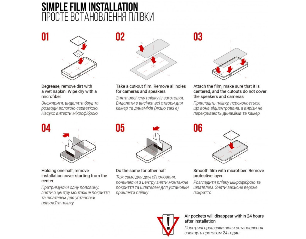 | Гидрогелевая пленка ArmorStandart - это защитная пленка с повышенной прочностью и прозрачностью, которая надежно защищает дисплей вашего устройства от пыли, царапин и потертостей. Пленка изготовлена из высококачественных материалов, поэтому она более гладкая, чем обычные пластиковые пленки. Свойство Self Healing. Восстановление от царапин и потертостей в течение 24 часов. Отличные тактильные ощущения и высокая чувствительность. Используй функцию TOUCH ID без помех - тонкий материал покрытия обеспечивает защиту экрана и сохраняет высокую чувствительность сенсора и работу сканера отпечатков пальцев. Рекомендуется установка у квалифицированного специалиста! Для самостоятельной установки рекомендуется ознакомиться с текстовой инструкцией ниже. Особенности: