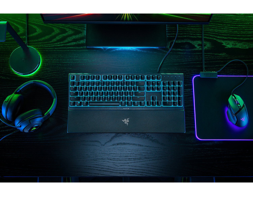| Клавиатура Razer Ornata V3 X USB UA Black (RZ03-04471900-R371) — это безупречный выбор для тех, кто ценит качество, эргономику и стиль в своей работе и развлечениях. Эта игровая клавиатура сочетает в себе передовые технологии и высокие стандарты производительности, что делает её идеальной для ПК. Благодаря мембранной конструкции, клавиатура обеспечивает мягкий, упругий ход клавиш, что позволяет наслаждаться более комфортной и тихой работой, независимо от того, играете вы или набираете текст. Razer Silent Membrane Switch гарантирует приятные тактильные ощущения, а также снижает шум при нажатиях. Клавиатура оснащена подсветкой Razer Chroma RGB, что позволяет индивидуализировать настройки освещения с 16,8 млн цветов. Используйте разнообразные эффекты подсветки для сотен игр с поддержкой Chroma, чтобы создать собственный уникальный стиль. Эргономичный дизайн Razer Ornata V3 X включает низкопрофильные клавишные колпачки и подставку для запястий, что способствует естественному положению рук, снижая напряжение в суставах при длительном использовании. Это обеспечивает максимальный комфорт и продуктивность даже во время длительных игровых сессий или рабочих часов. Благодаря влагостойкой конструкции, Razer Ornata V3 X подготовлена к случайным неприятностям и интенсивным игровым сессиям. Её надёжность подкрепляется долговечными клавишными колпачками с UV-покрытием, которое защищает от стирания и царапин. Кроме того, клавиатура имеет программируемые клавиши, которые позволяют настроить игровой процесс под ваши нужды, предоставляя дополнительное преимущество в скорости и удобстве. Наслаждайтесь продуктивностью на новом уровне с Razer Ornata V3 X — клавиатурой, которая сочетает в себе современные технологии, эстетичный дизайн и безупречное качество. Это не просто устройство для работы и игры, это настоящий инструмент для достижения нового уровня возможностей. |