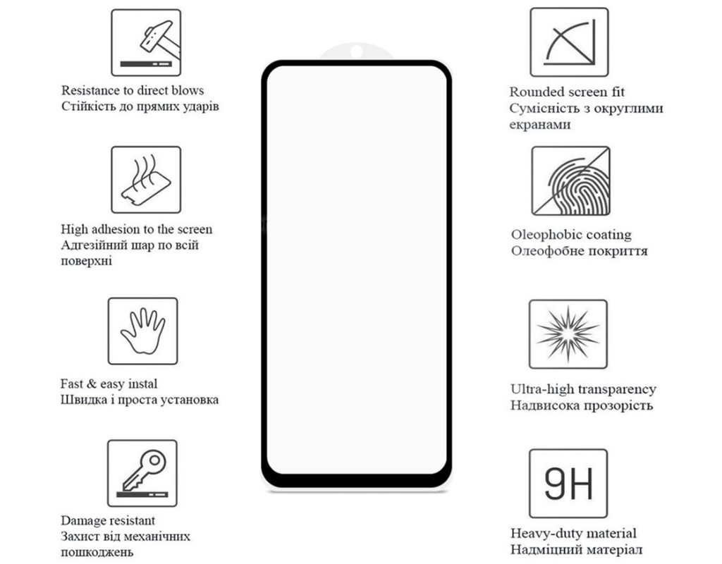 Защитное стекло Drobak Frame A+ Full Glue – это новое высокоэффективное решение для защиты экрана вашего смартфона от царапин, трещин и сколов, изготовлено из инновационного закаленного стекла, очень прочное, чтобы защитить экран телефона при падении на асфальт, при бытовых ударах, при взаимодействии с царапающими предметами (ключи, песок, лезвие ножа, гвозди, и т. п.). Инновационное закаленное стекло проходит несколько этапов специальной термообработки. В то же время, защитное стекло Drobak достаточно тонкое и практически незаметное на экране. Совершенно не влияет на чувствительность сенсора смартфона. Также, стекло, из которого изготовлена накладка, пропускает 98% света, исключая потерю яркости и качества изображения экрана девайса. Особая форма стекла выполнена в соответствии с особенностями смартфона. Защитное стекло Drobak Frame A+ Full Glue — это качественный, практичный в использовании аксессуар, который поможет избежать дорогостоящей процедуры замены экрана смартфона, сохранит дисплею его первоначальный внешний вид. Особенности стекла: