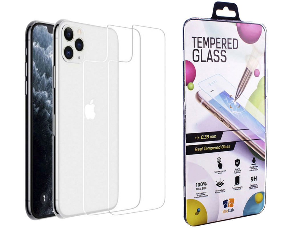 | Защитное стекло на заднюю панель телефона Drobak защищает корпус телефона от царапин и сколов, уменьшает выступ камер. Особенности: