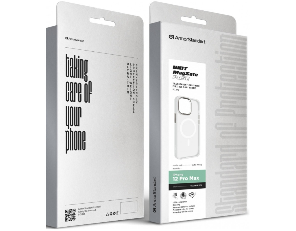 Чехол для мобильного телефона Armorstandart Unit MagSafe Apple iPhone 12 Pro Max Matte Clear Silver (ARM70443)