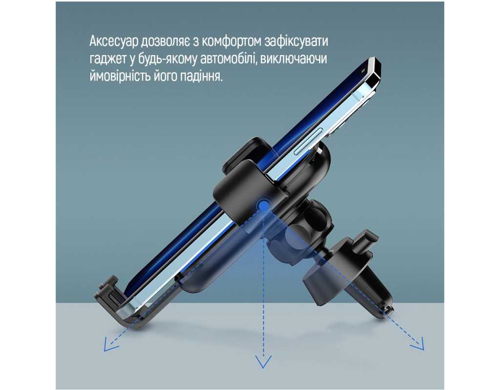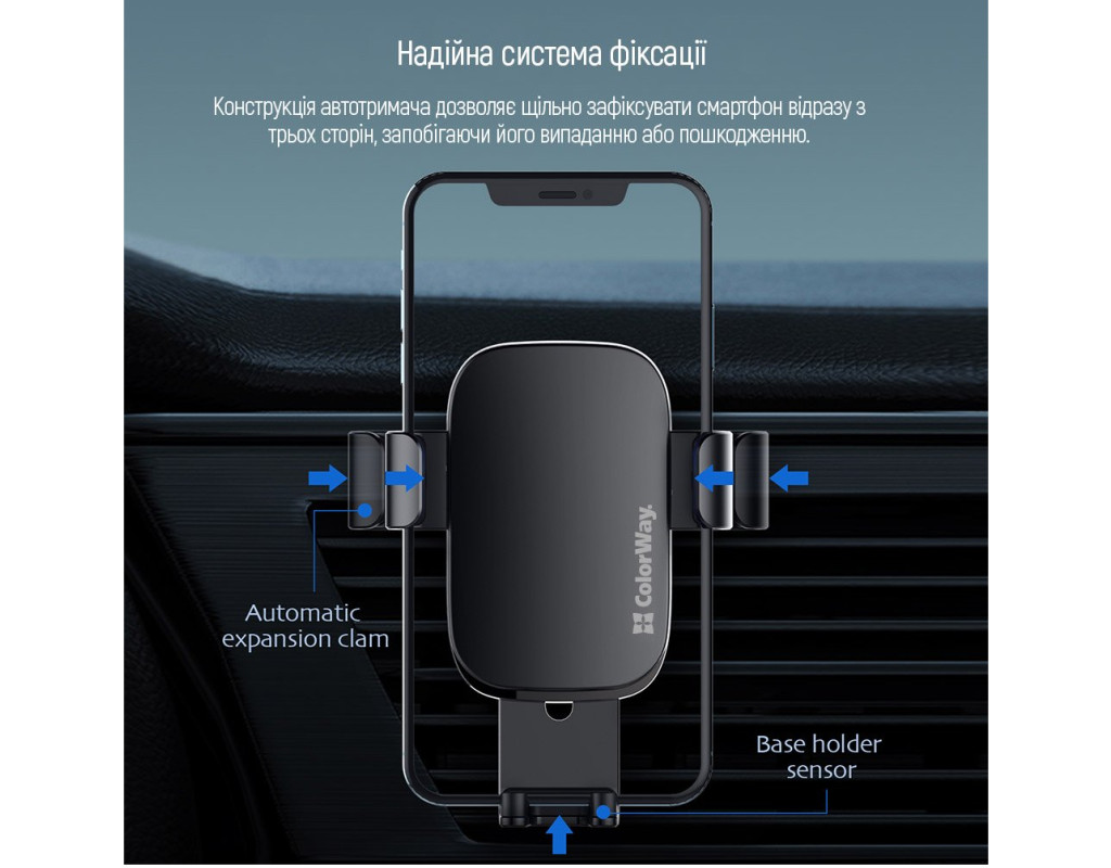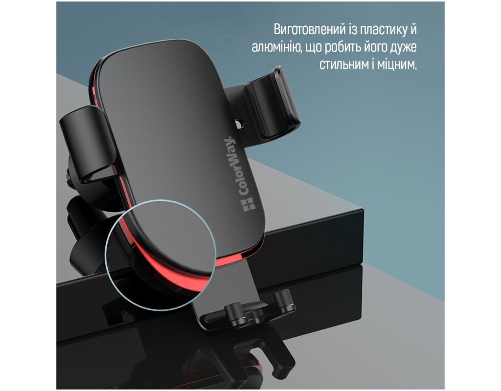 Автодержатель СolorWay для телефона Metallic Gravity Holder 3 Black представляет собой автомобильный держатель для смартфонов, который устанавливается в дефлектор системы вентиляции автомобиля. Аксессуар изготовлен из прочных материалов, а продуманный раздвижной механизм обеспечит надежную фиксацию смартфона. СolorWay Metallic Gravity Holder 3 изготовлен из пластика и алюминия, что делает его весьма стильным и прочным. Крепится держатель в дефлекторе автомобиля при помощи гибких ножек. Внутреннее покрытие аксессуара имеет мягкое покрытие, что исключает появление царапин и потертостей на корпусе смартфона при его установке в держатель. Крепление совместимо с мобильными аппаратами, имеющими диагональ экрана от 4" до 6,5" (от 6.6 см до 9 см в ширину). Конструкция автодержателя позволяет плотно зафиксировать смартфон сразу с трех сторон, предотвращая его выпадение или повреждения. В местах, где держатель соприкасается с телефоном, находятся специальные прорезиненные вставки, которые защищают его от царапин и потёртостей. Дизайн автодержателя тщательно продуман, поэтому полностью соответствует всем требования пользователей. Нижняя подставка имеет соответствующий вырез спереди, который обеспечивает свободный доступ к кнопке Home и позволяет использовать все функции смартфона. На нижней части автодержателя находится еще один вырез, позволяющий подсоединять зарядное устройство и беспрепятственно заряжать телефон. Он имеет правильные размеры и формы, поэтому не доставляет никаких проблем при подключении зарядки. Преимущества
