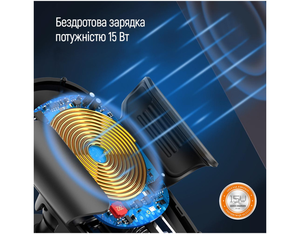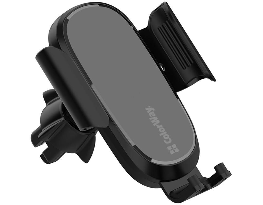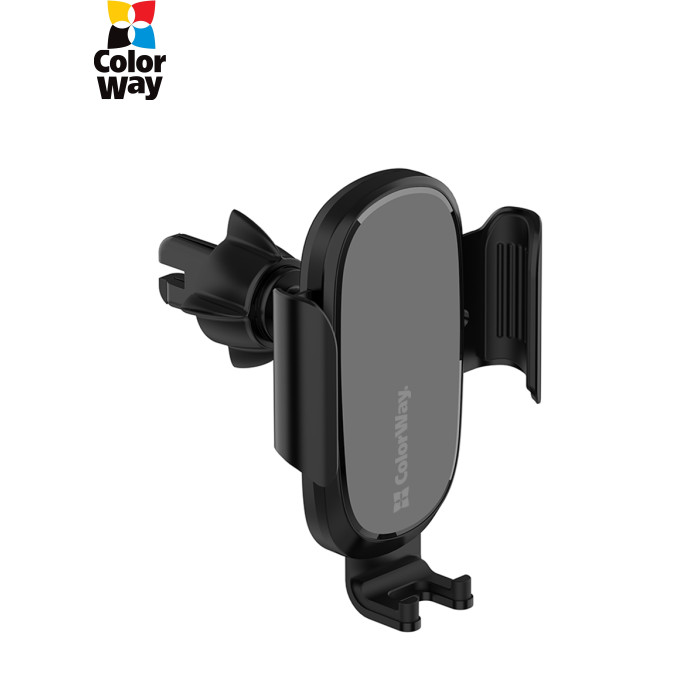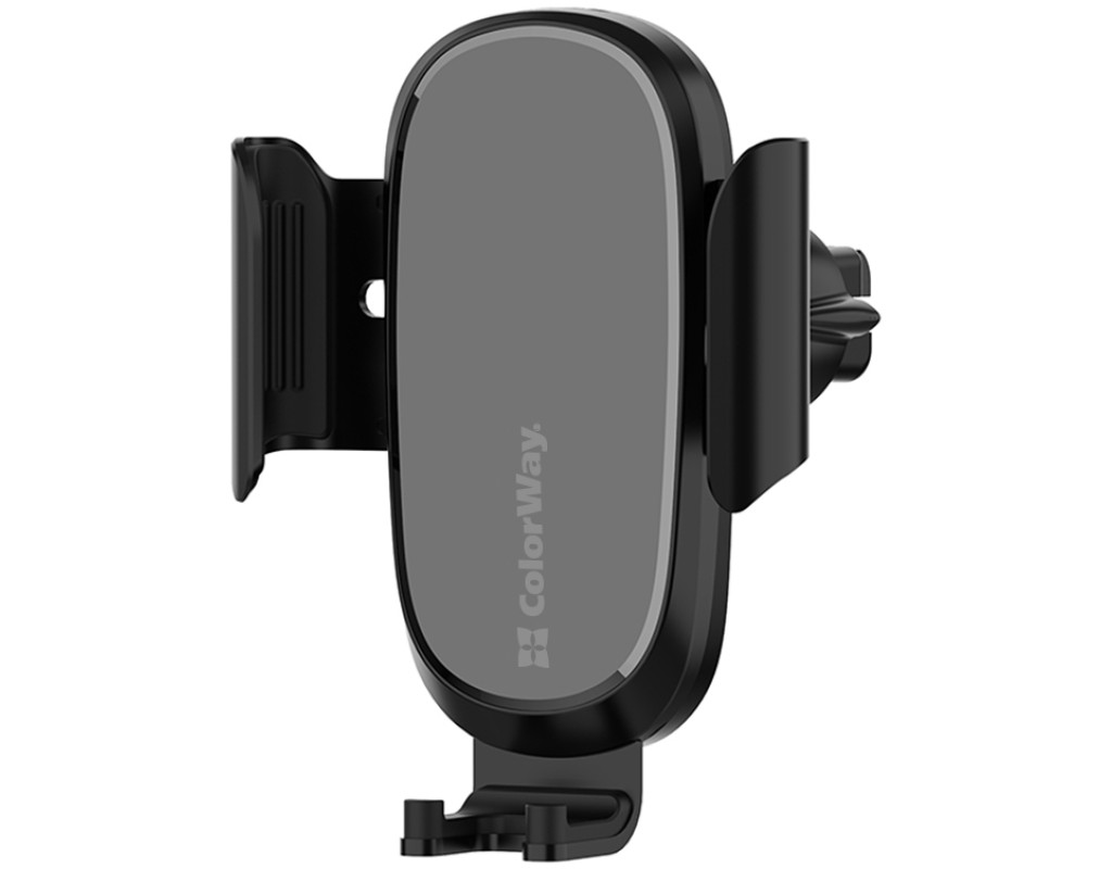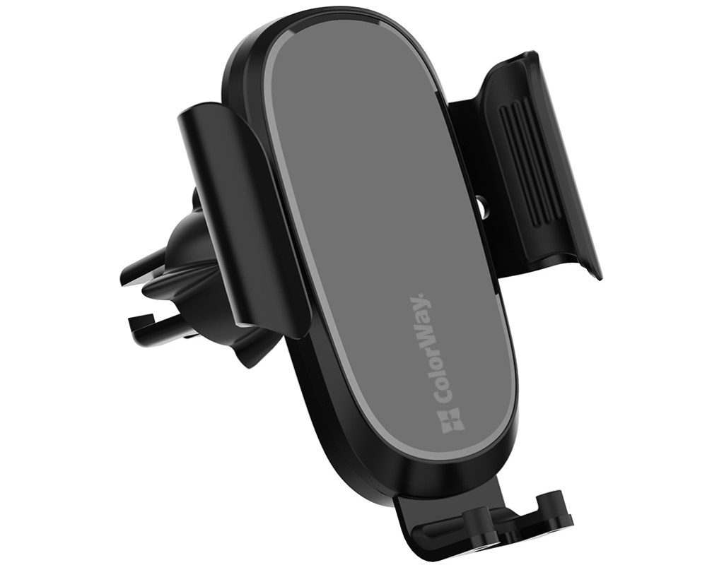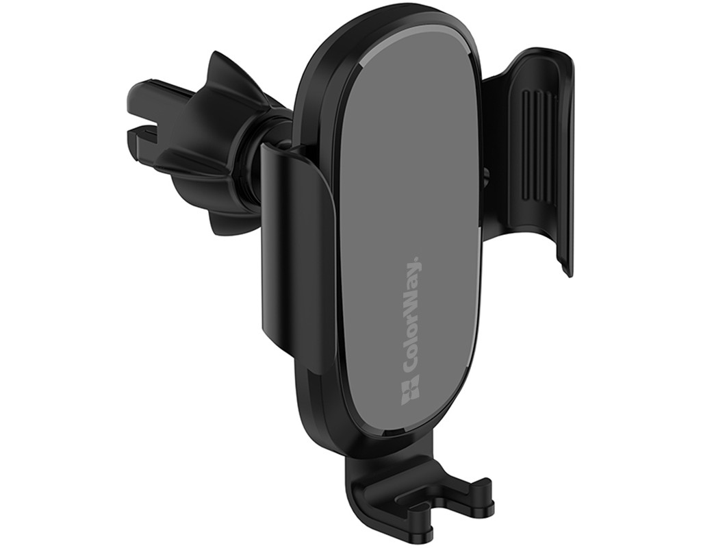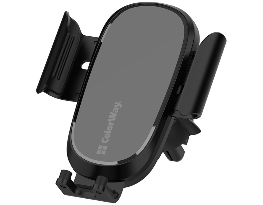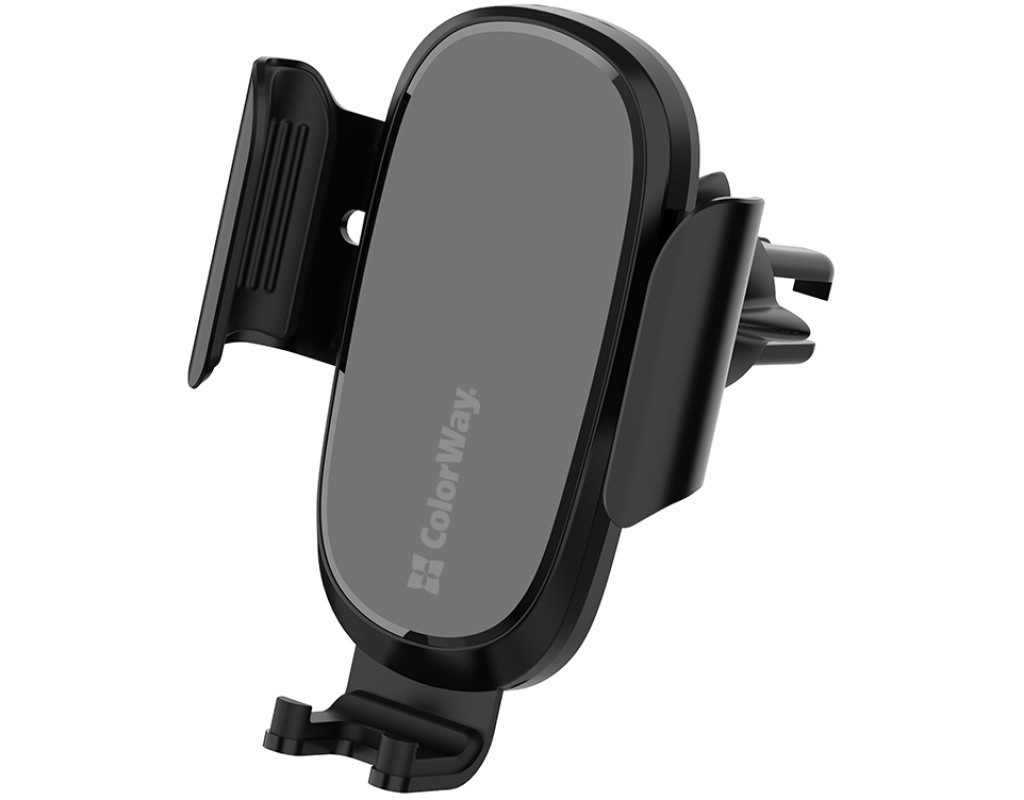Беспроводное автомобильное зарядное устройство ColorWay Air Vent Car Charger – имеет функцию беспроводной, зарядки, которая поможет вам зарядить смартфон, поддерживающий технологию Qi. Крепится на вентиляционную решетку и надежно фиксируется. Держатель выполнен из прочного пластика и алюминия, а конструкция позволит установить смартфон под нужным углом. Дизайн устройства гармонично вписывается в любой автомобиль, а его универсальность подойдет практически под любой смартфон диагональю от 4.7” до 6.8” (от 7.3 см до 9.5 см в ширину). Высокая прочность крепления позволит выпадение даже при сильном встряхивании, а продуманная конструкция позволит использовать функционал телефона на все 100%, не закрывая одновременно обзор. Прорезиненная клипса и кавычки предотвратят появление царапин как на самом устройстве, так и на вентиляционной решетке. Механизм вращения на 360 градусов позволит закрепить смартфон в удобном для вас положении. В дополнение к возможности надежной фиксации смартфона автомобильный держатель имеет встроенную беспроводную зарядку мощностью 15 Вт, что позволит зарядить смартфон с высокой скоростью. Зарядное устройство оснащено умным чипом для защиты ваших устройств от короткого замыкания, перенапряжения, перегрева и перегрузки по току. Особенности