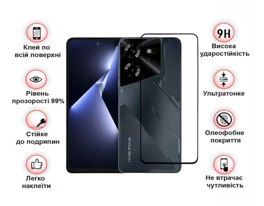 Назначение - для телефона, Вид покрытия - защитное, Совместимость с моделями - Tecno Pova 5, Количество в упаковке - 1 шт