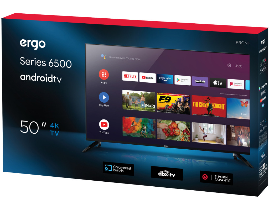 Ergo GUS6500 – телевизор в современном дизайне, разработанный специально для ценителей отличного качества и сбалансированной стоимости. Он оснащен встроенными динамиками, которые подарят невероятный глубокий звук для полного погружения в ТВ. Качественное изображение Функция улучшения изображения телевизора на процессорном уровне, объединяющая алгоритмы интеллектуальной обработки видеопотока. Android TV Официальная и популярная операционная система в мире от Google уже на вашем телевизоре ERGO. Безграничные возможности просмотра мировых стриминговых сервисов, новейшие премьеры, музыка, игры и путешествия в интернете на кнопке вашего пульта. DBX-TV Увлекайтесь лучшей динамикой звучания от dbx-tv – эта технология обработки звука разработана именно для компактных акустических систем телевизоров и позволяет получить чистые высокие и глубокие низкие частоты для более комфортного восприятия. Удобное управление Выполняйте поиск любимых фильмов и телепередач с помощью голоса. Мгновенно транслируйте изображения со своего смарт-устройства на большой экран телевизора: это может быть семейный просмотр фотоархива или любимое видео. Безрамочный дизайн Дизайн телевизора с ультратонкой рамкой идеально впишется в ваш интерьер. |