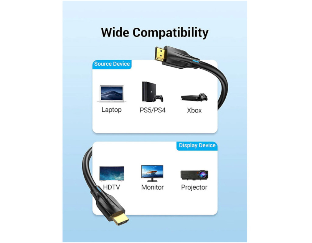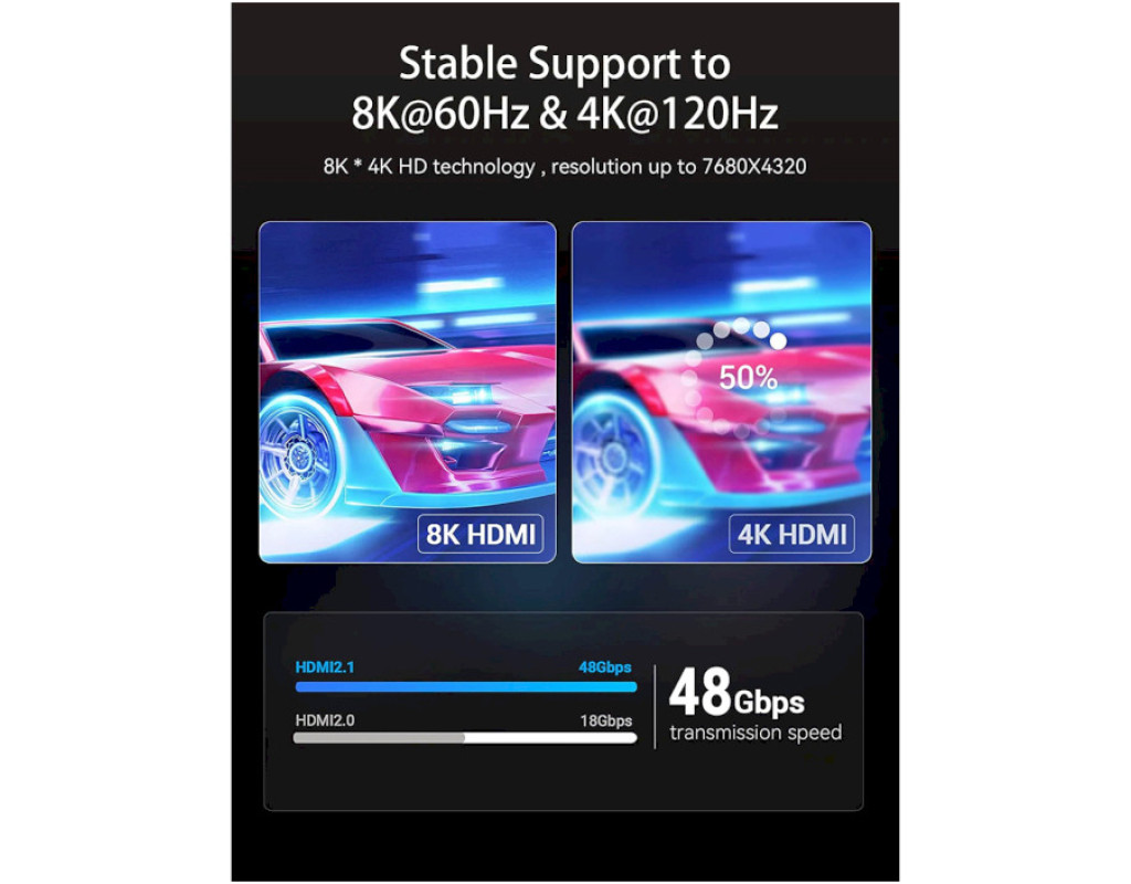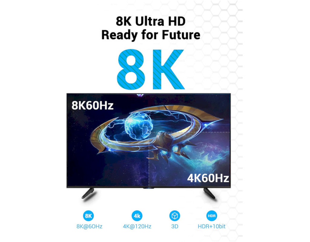8K 60Hz, материал: ПВХ (поливинилхлорид), позолоченный коннектор
