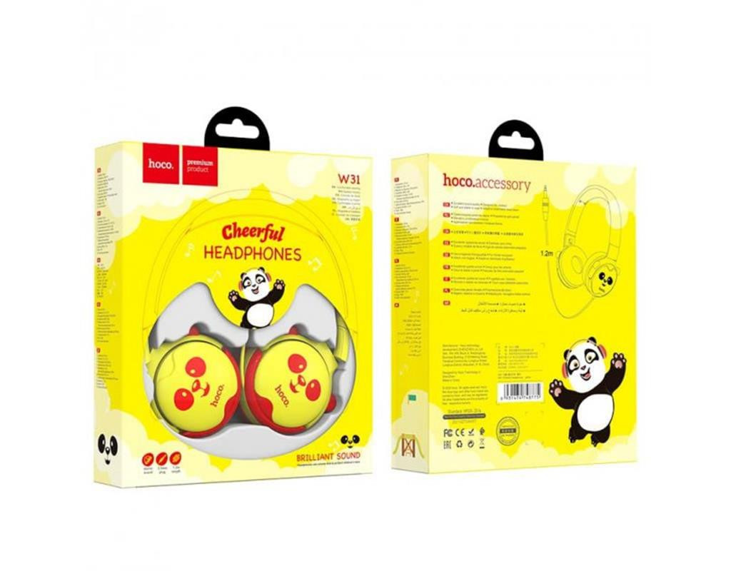 В форме мультяшной панды, разработаны специально для детей Имеют легкую конструкцию Громкость ограничена 85 децибелами, что защищает детские уши Корпус изготовлен из надежного и прочного пластика Мягкие амбушюры из экокожи плотно прилегают к голове, а мягкое оголовье регулируется Детские наушники Hoco W31, имеют ограничение громкости в 85 децибел, что лучше защищает детские уши, легкую конструкцию, а кабель длиной 1.2м позволит себя чувствовать свободно, универсальный штекер 3.5мм позволит подключиться почти к любому устройству. |