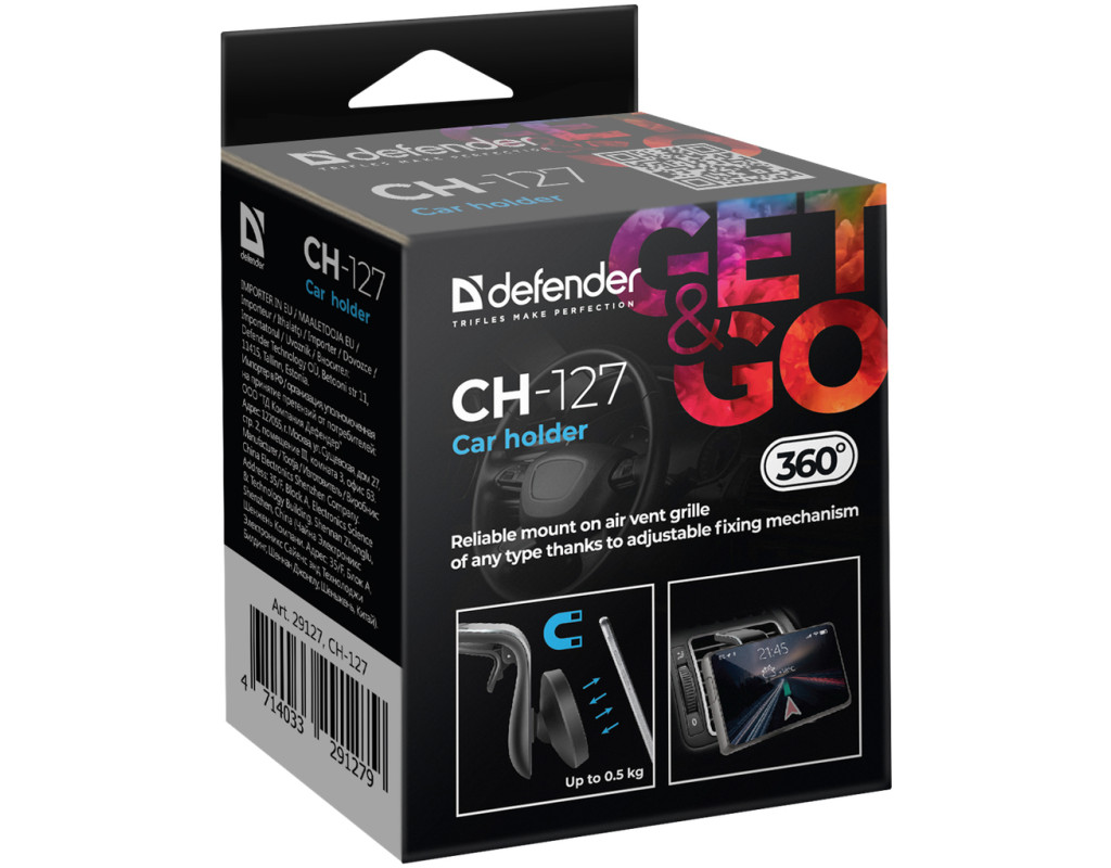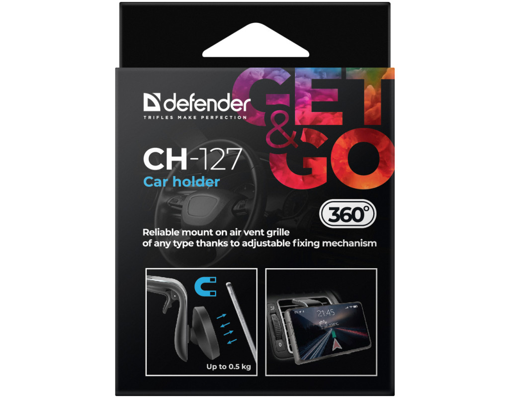 Автодержатель магнитный Defender CH-127 подходит для всех видов смартфонов. Компактный размер держателя позволяет брать его с собой в путешествия и использовать на другом автомобиле. Надежная фиксация на решетке вентиляции любого типа за счет регулируемого крепежа держателя. Легко превращается в подставку с несколькими возможными углами обзора для просмотра видео или набора текста. Устройство поворачивается на 360° градусов и фиксируется в любой позиции! Металлические пластины для крепления смартфона на держателе идут в комплекте. Особенности: