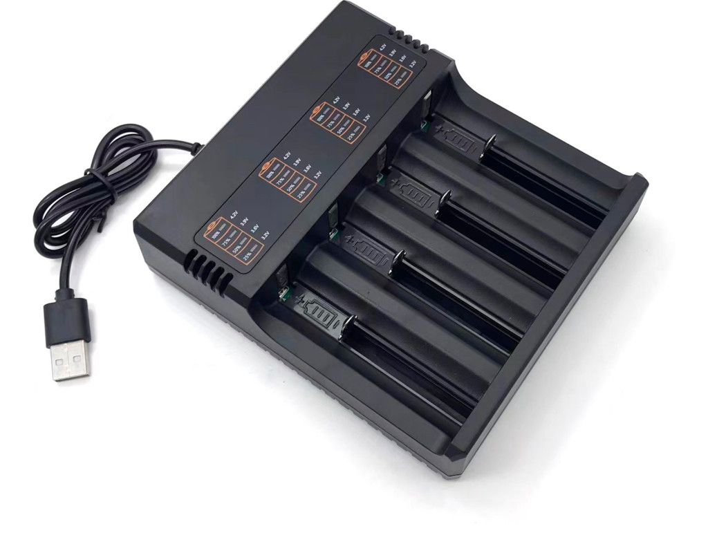 | Зарядний пристрій MS-5DP4, 4 канали, 18650 / 26650 / 21700, 4.2V / 4000mAh, живлення від USB |