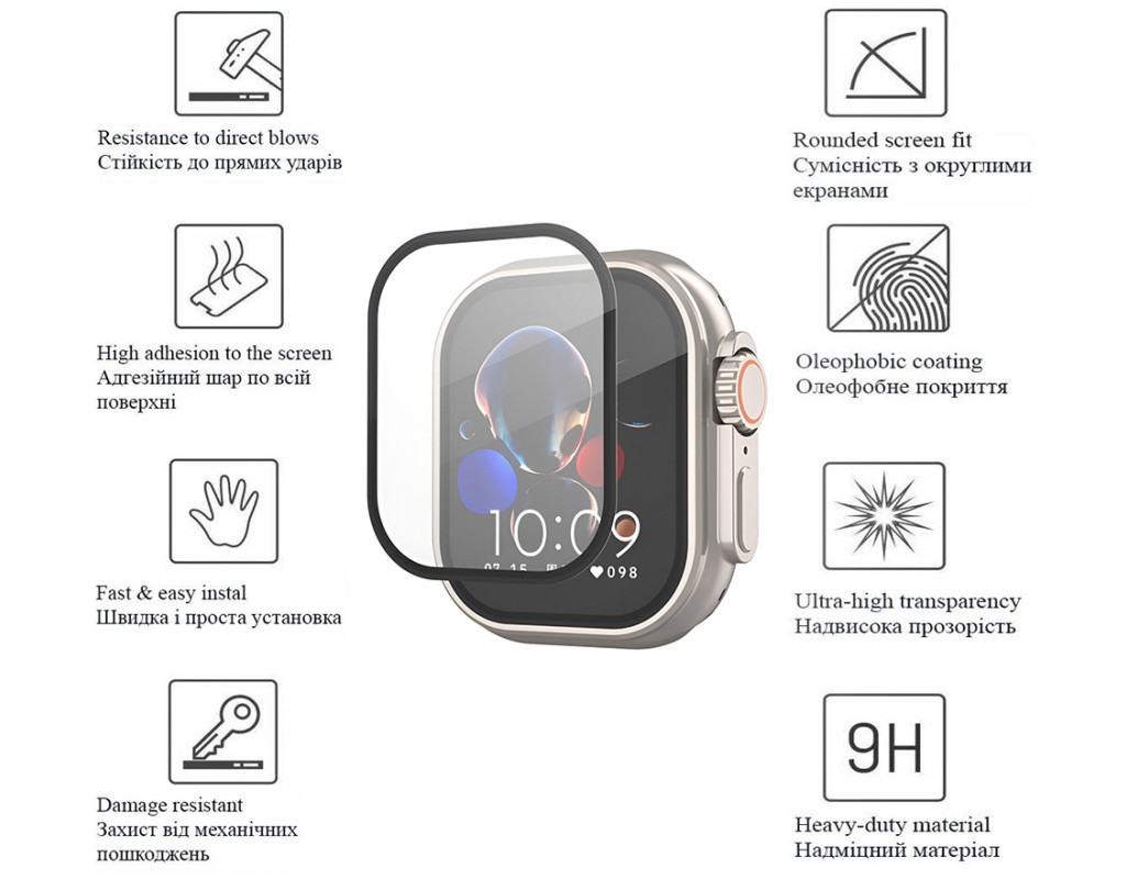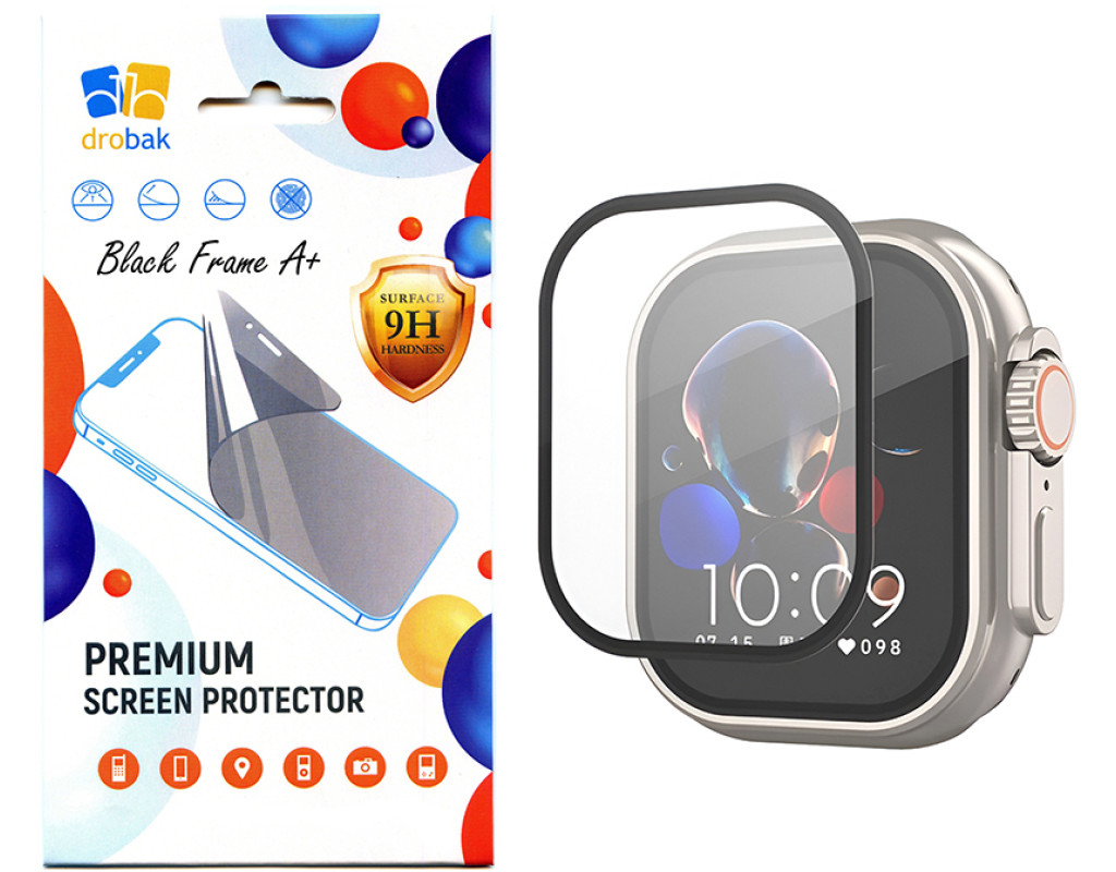 | Защитное стекло для смарт часов Drobak Black Frame A+ - это специально разработанное ударопрочное стекло, которое выпускается в нескольких размерах и подходит для разных моделей смарт часов. Преимущества защитного стекла Drobak Black Frame A+: