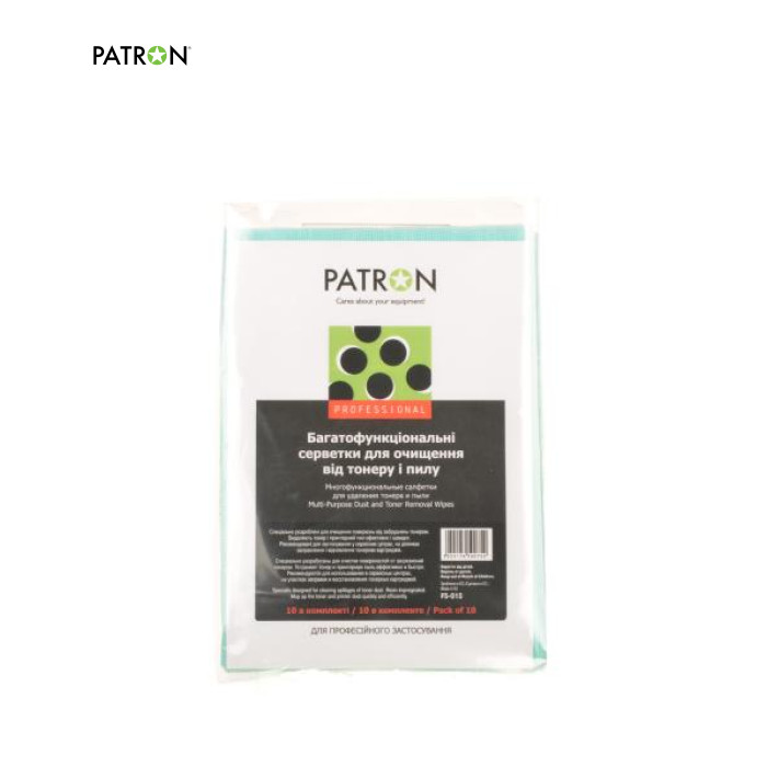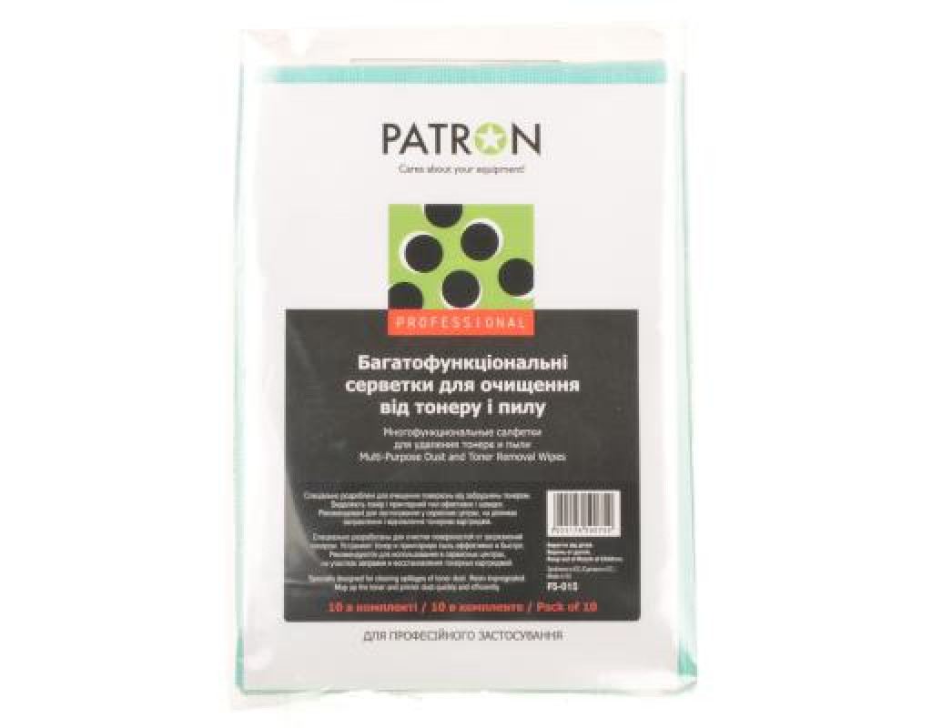 Салфетки PATRON Multi-Purpose Dust and Toner Removal Wipes, 10psc (F5-015) - многофункциональные чистящие салфетки Patron для удаления частиц тонера с пластиковых поверхностей. Количество сухих салфеток в упаковке: 10 шт.