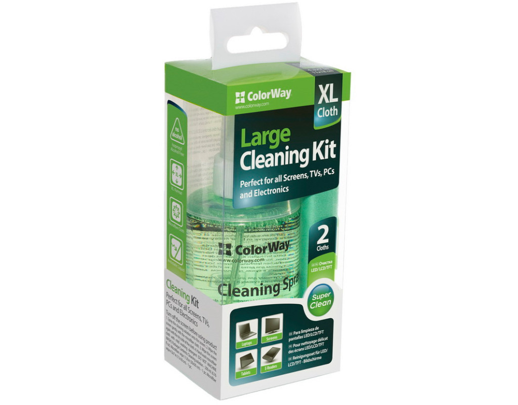 Универсальный набор для очистки домашней, офисной и портативной электроники. Вы ощутите простоту и комфорт использования с помощью универсальных супер тряпок, которые идут в комплекте. Большой флакон и огромная тряпка обеспечат долгое и приятное использование этого набора.