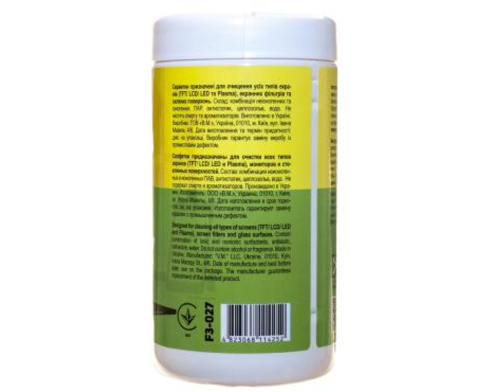 Удобная компактная упаковка вмещает 100 влажных салфеток, которые надежно очищают экраны мониторов, ноутбуков, мобильных телефонов, линзы фото/видео оборудования, а также предотвращают от статического эффекта.