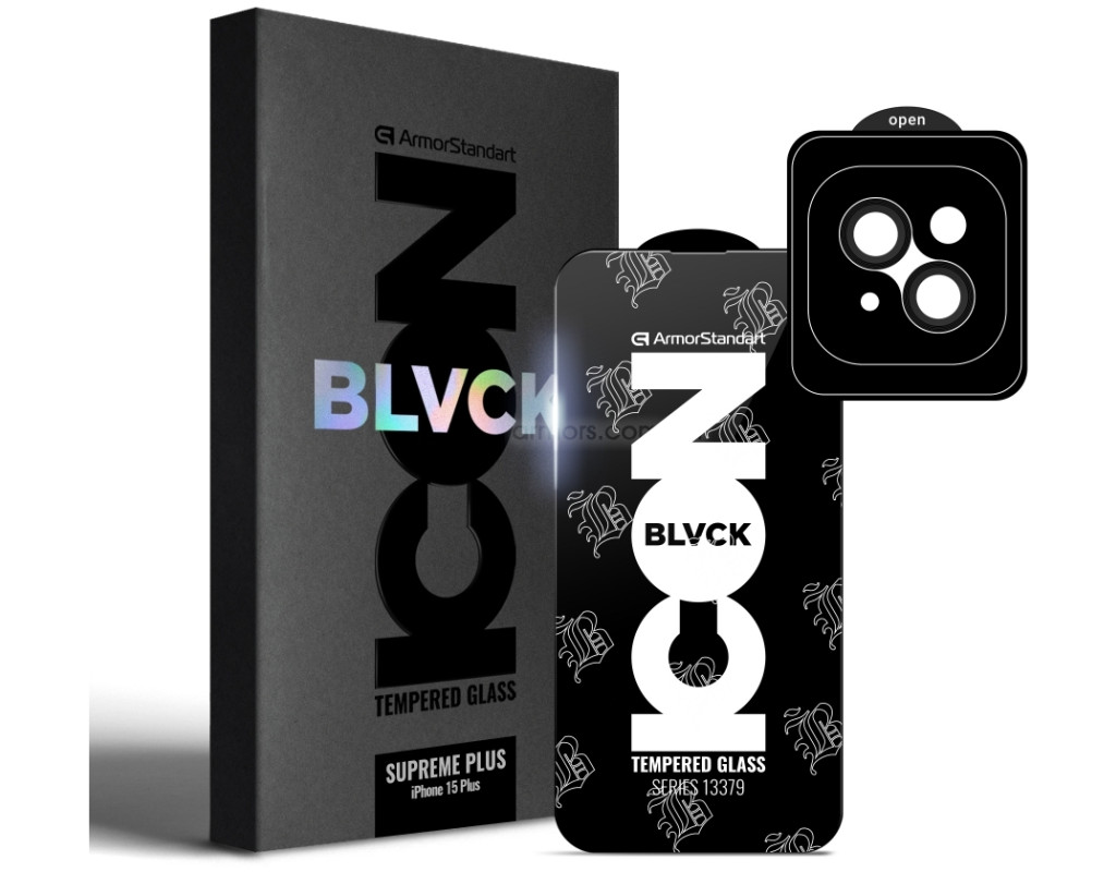 Стекло защитное Armorstandart Supreme Plus Black Icon Apple iPhone 15 Plus (ARM71138)