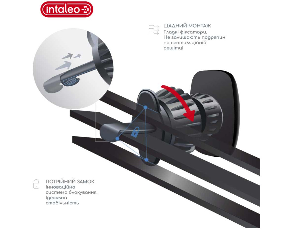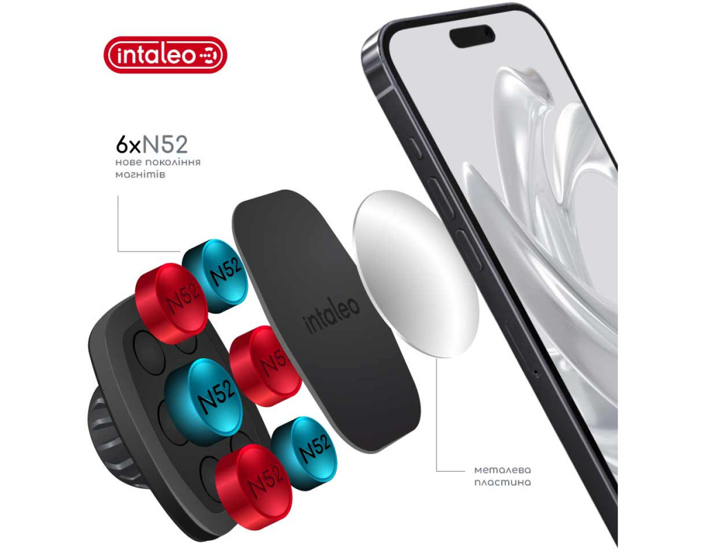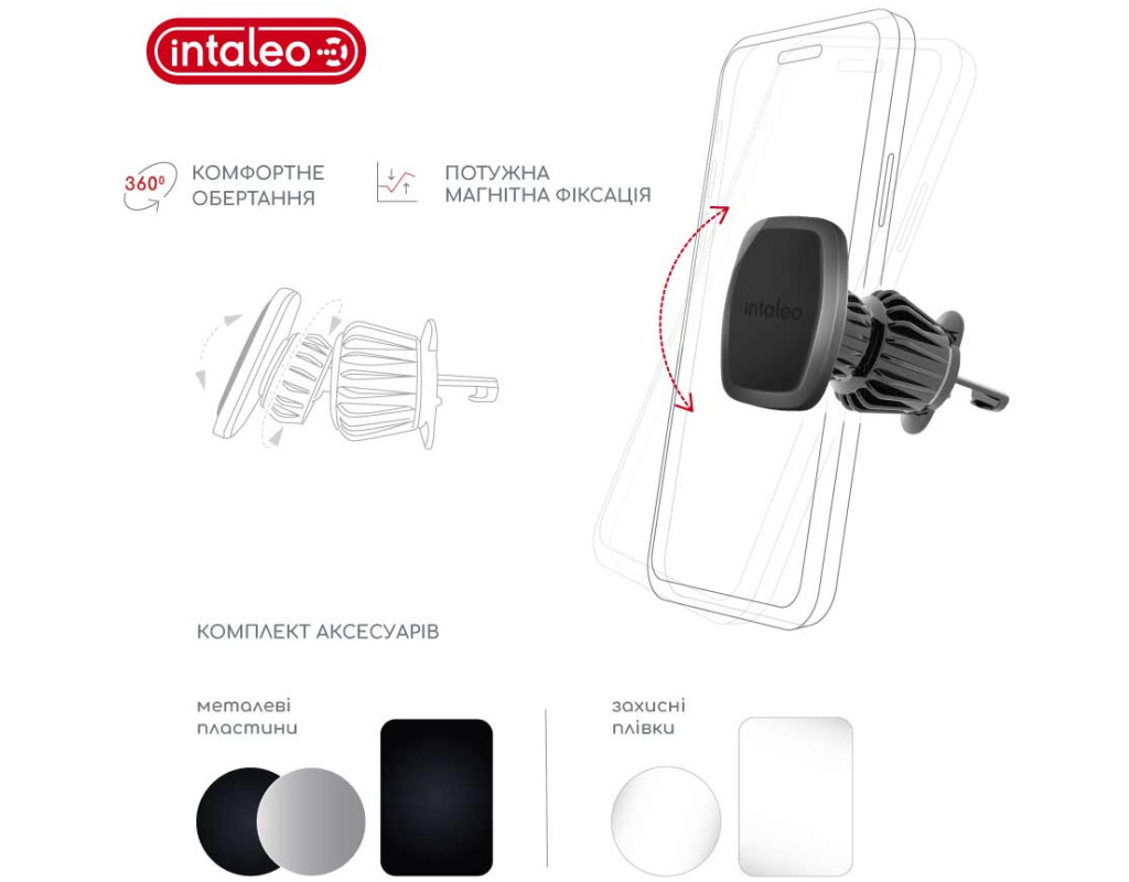 Компактный универсальный магнитный автодержатель Intaleo CM05GG – удобно и безопасно крепится на решетке вентиляции передней панели автомобиля с учетом оптимального угла наклона. Достаточно просто приложить устройство к держателю. Автодержатель имеет 6 мощных магнитов, поэтому устройство крепко и надежно фиксируется на держателе с помощью металлической пластины, которую можно закрепить на самом устройстве или на его чехле. Держатель оснащен прорезиненной головкой, которая имеет угол оборота в 360 градусов, позволяя использовать смартфон в любом удобном положении. Особенности: