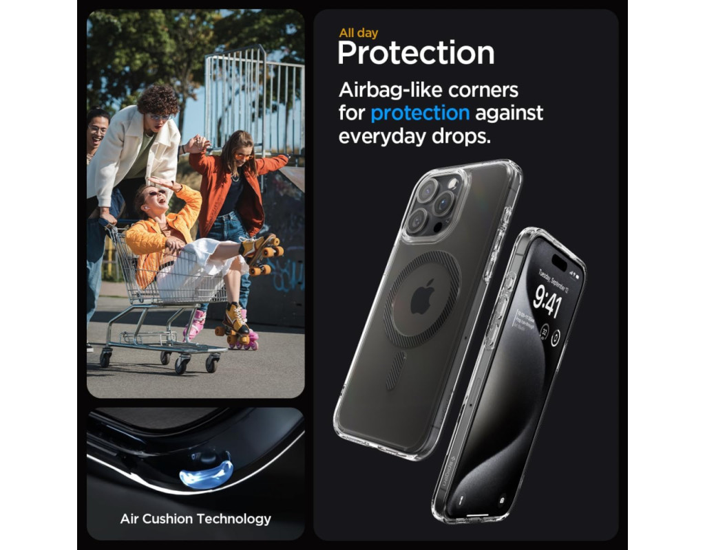 | Прозрачная серия Ultra Hybrid MagFit сочетает в себе амортизирующий гибкий бампер с жесткой спинкой для обеспечения максимальной защиты и цветное магнитное кольцо, разработанное специально для MagSafe Кристально чистая задняя часть, предназначенная для сохранения первоначального внешнего вида телефона без пожелтения с течением времени Углы охраняются с помощью Air Cushion Technology®, которая полностью защищает от повседневных ударов Поддерживает заряд через Magsafe, благодаря магнитному кольцу. |