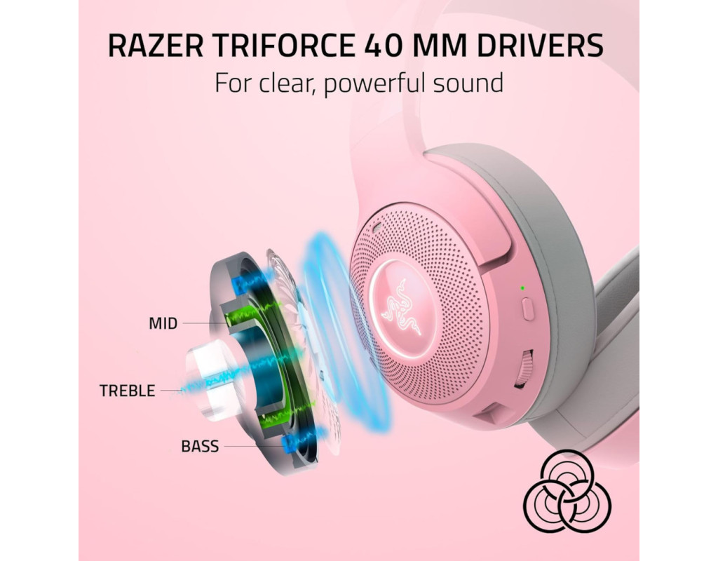 | Наушники Razer Kraken Kitty V2 Bluetooth Quartz (RZ04-04860100-R3M1) нацелены на сердца геймеров и стримеров, объединяя непревзойденное качество звука, стиль и комфорт в фантастическом дизайне. Созданные для тех, кто хочет выделиться, эти наушники сочетают в себе передовые возможности Razer Chroma RGB, позволяющие каждому создать свою уникальную атмосферу благодаря 16,8 миллионам цветов и множеству световых эффектов. Закрытые наушники с поддержкой 7.1 обеспечивают звуковую среду, которая полностью погружает в игру или любимый фильм, исключая внешние шумы. Высокотехнологичные динамики Razer TriForce диаметром 40 мм отвечают за передачу исключительных высоких, средних и низких частот. Геймеры будут приятно поражены возможностью почувствовать каждую деталь, делая опыт максимально реалистичным. Благодаря Bluetooth 5.2 наушники предлагают стабильное беспроводное соединение с низкой задержкой, а специальный игровой режим гарантирует мгновенную реакцию в интенсивные моменты. Этот интерфейс позволяет безупречно подключаться к телефону, телевизору или ноутбуку, обеспечивая универсальность в использовании. Интегрированный микрофон с шумоподавлением и функцией формирования луча поднимает качество общения на новый уровень. Независимо от того, находитесь ли вы в помещении или на улице, технология шумоподавления обеспечивает кристальную четкость вашего голоса. Экошкуряные амбушюры обеспечивают максимальный комфорт при ношении, а вес 325 г позволяет наслаждаться любимыми играми, стримами или музыкой часами без усталости. Дизайнерские решения, такие как кошачьи ушки, добавляют милого шарма вашему образу. Время автономной работы до 60 часов позволяет наслаждаться потоками и играми без перерыва, а удобный интерфейс зарядки USB Type-C всегда поможет быстро вернуть наушники в действие. Эти наушники – больше, чем просто устройство для связи, это выражение вашего стиля и технологического уровня. Выбирайте Razer Kraken Kitty V2 Bluetooth Quartz, чтобы ваши звук и стиль всегда были на высоте. |