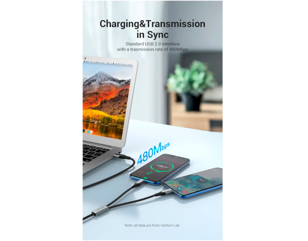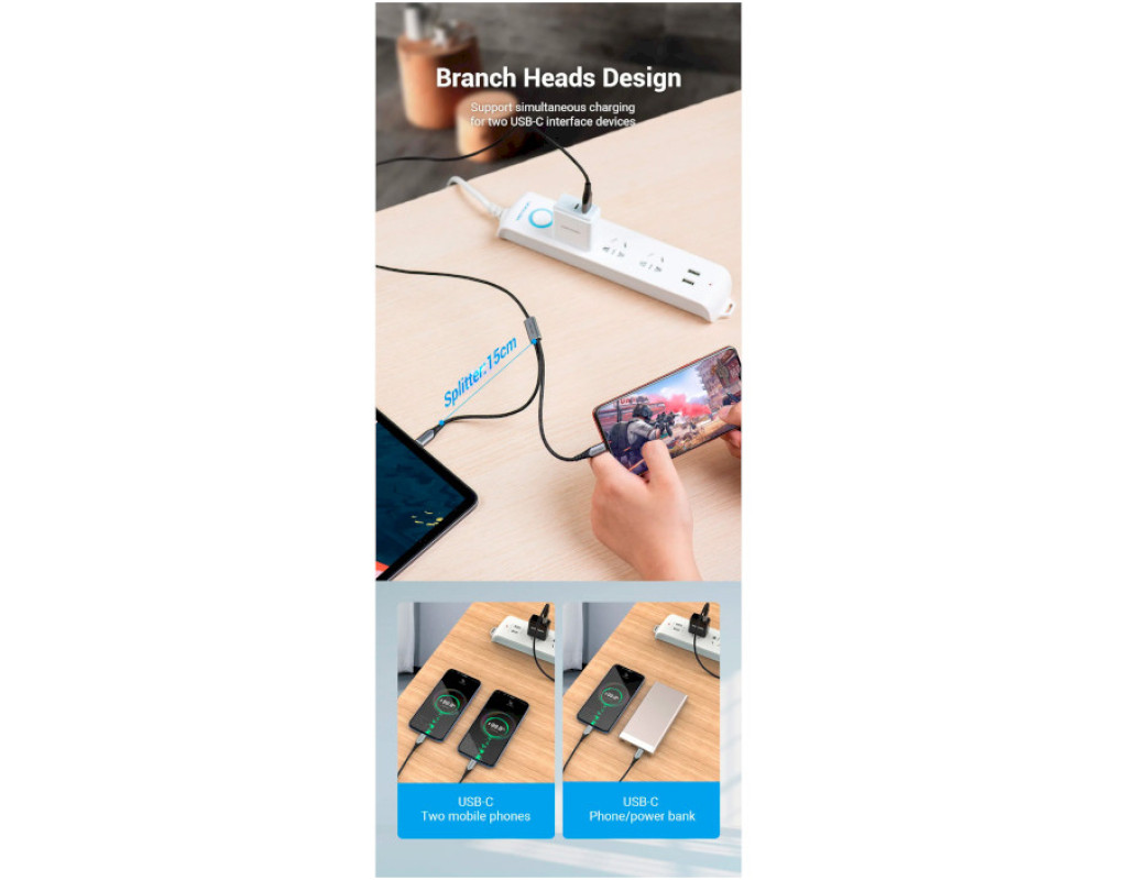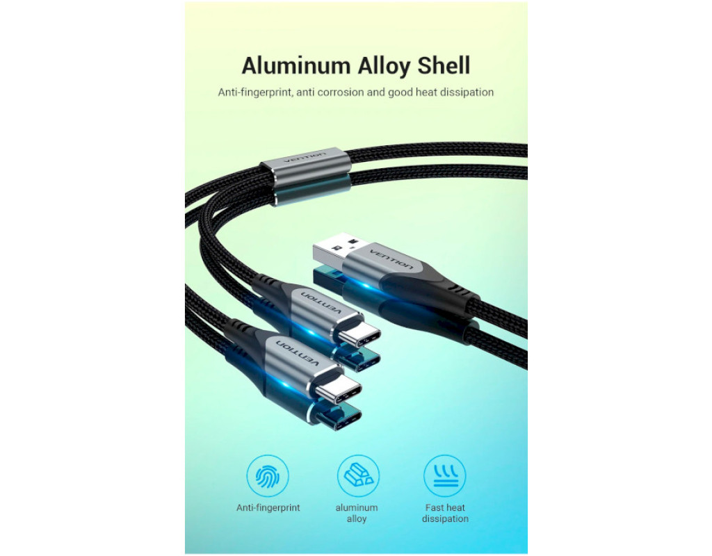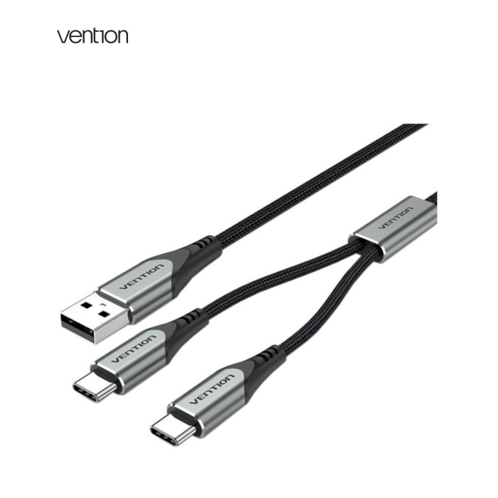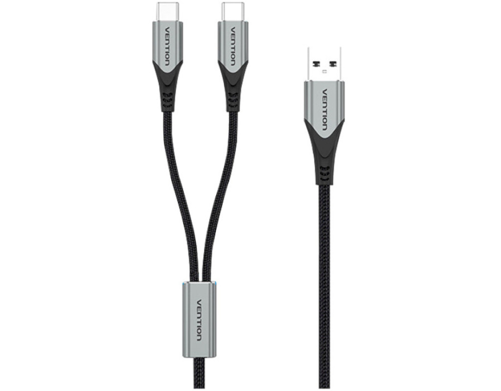 Дата кабель USB 2.0 AM to 2хUSB-C M 1.0m 2.4А 480Mbps Aluminum VENTION (CQOHF)