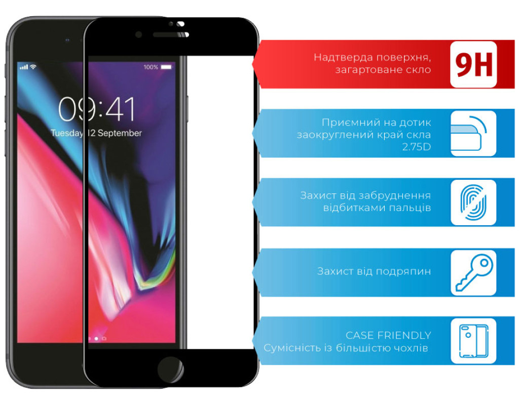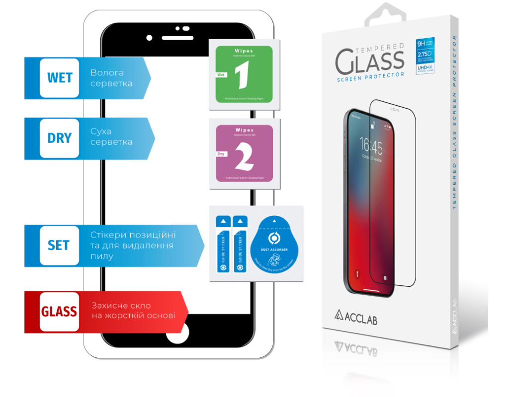 Назначение - для телефона, Вид покрытия - защитное, Совместимость с моделями - Apple IPhone 7/8 Plus, Особенности - прочность: 9Н, влажная салфетка, Количество в упаковке - 1 шт