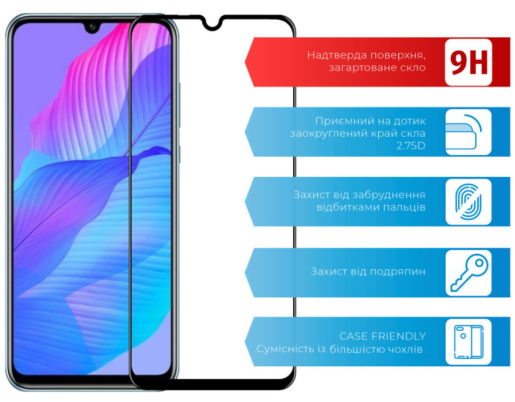 Назначение - для телефона, Вид покрытия - защитное, Совместимость с моделями - Huawei Y8p/P Smart S, Особенности - прочность: 9Н, влажная салфетка, Количество в упаковке - 1 шт