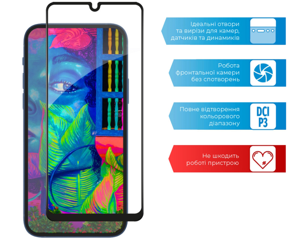 - Уровень прочности: 9H. Минимизирует риск повреждения передней панели мобильного устройства при повседневном использовании.