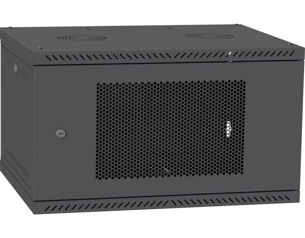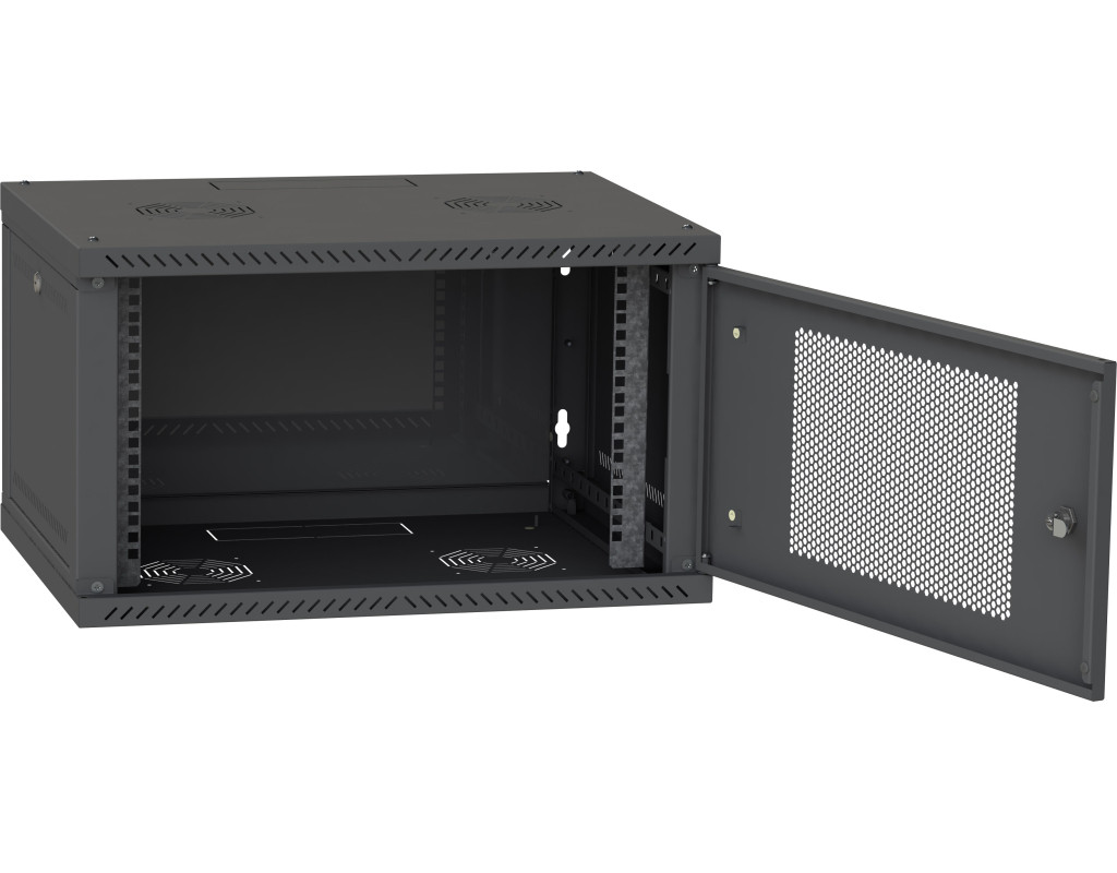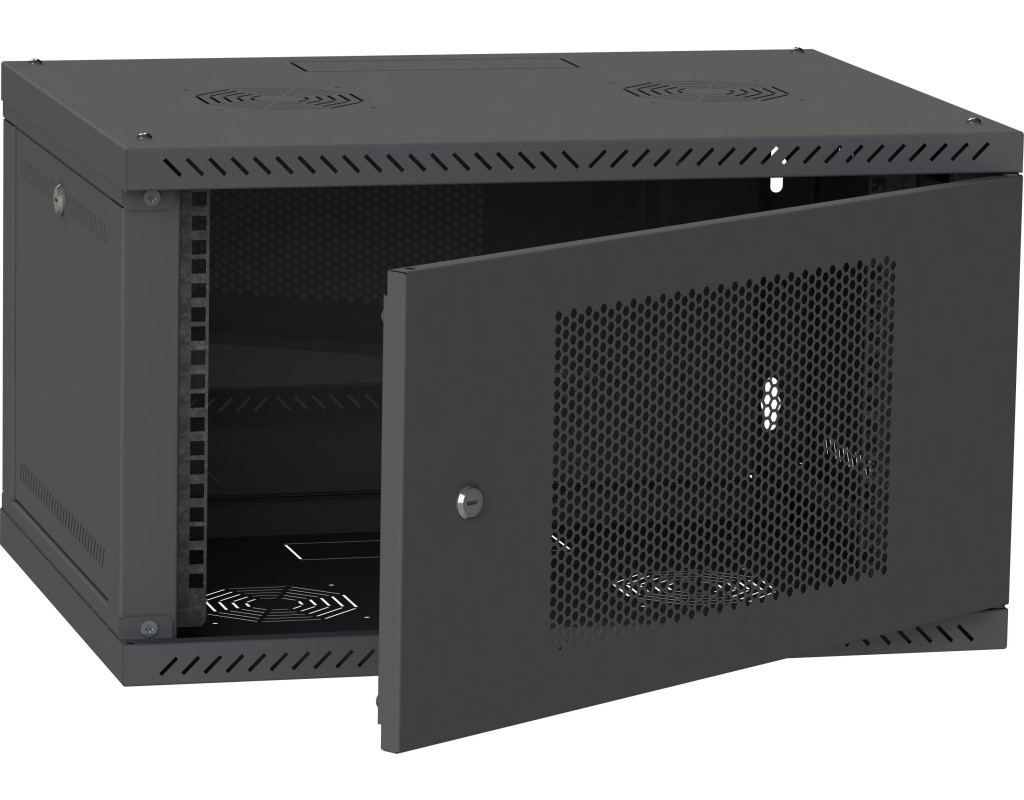Шкаф настенный Ipcom 6U, 600*600, перфорированные дверца, RAL9005 (СН-6U-060х060-ДП-9005)