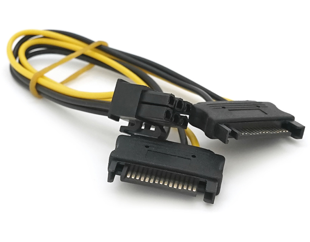 | Кабель-перехідник для живлення відеокарти з роз`ємами SATA+SATA до роз`єму 6P забезпечує сумісність між блоком живлення, що має роз`єми SATA, та відеокартою, що потребує роз`єм 6P для живлення. OEM зазвичай означає, що кабель виготовлений стороннім виробником і може не мати офіційний логотип або упаковка оригінального виробника. Цей кабель-перехідник дозволяє використовувати стандартні роз`єми SATA для живлення відеокарти, яка потребує роз`єму 6P, і може бути зручним рішенням, якщо у вас є вільні роз`єми SATA на блоці живлення, але не вистачає роз`ємів 6P для живлення відеокарти. |