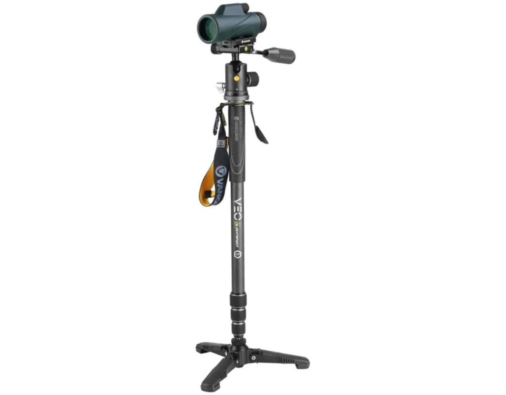 Порой фотографу требуется больше устойчивости, чем может предложить традиционный монопод, но не всегда есть возможность носить с собой, либо установить полноценный треножный штатив, например на концерте, спортивном мероприятии или в походе. И это именно тот случай, когда моноподы Vanguard VEO 2S проявят себя наилучшим образом. Благодаря системе опоры Tri-Feet, эти моноподы свободно без поддержки стоят в вертикальном положении, требуя минимум места для установки. Vanguard VEO 2S CM-264TBP - это четырехсекционный карбоновый монопод, который стал гораздо более универсальным, благодаря комплектации шаровой штативной головкой VEO 2 BP-120, и способен нести нагрузку до 12 кг. Кроме быстроты и удобства выбора позиции для удачного кадра, данная штативная головка также обеспечивает значительное удобство для панорамирования и видеосъемки благодаря дополнительному фрикционному зажиму и телескопической ручке. Головка, в свою очередь, оснащена удлиненной штативной площадкой стандарта Arca-Swiss. Если необходимо уменьшить вес монопода - достаточно снять штативную головку и использовать монопод без нее, закрепляя оборудование на имеющуюся стандартную резьбу четверть дюйма. Хорошим тоном для компании Vanguard стала забота об удобстве и удовольствии пользователя. Штатив оснащен мягким легким темляком на запястье и карабином, которые позволяют быстро менять локацию и переносить монопод в новое место съемки и наблюдений. Также монопод имеет каучуковую накладку на верхнюю секцию для удобства захвата, и резиновую крышку, скрывающую винт площадки монопода. |