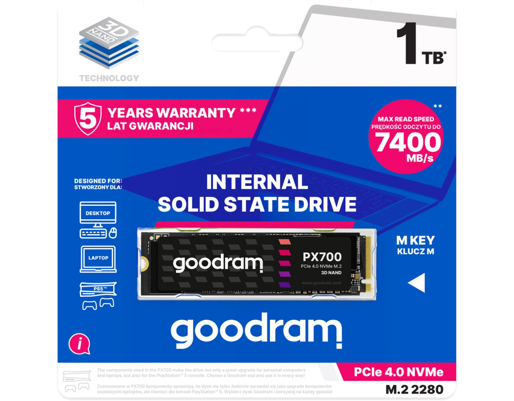 | SSD 1Tb GoodRAM PX700 M.2 2280 PCIe NVMe Gen 4x4 3D NAND, Retail |