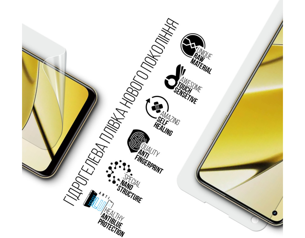 Назначение - для телефона, Вид покрытия - защитное, гидрогелевая, Совместимость с моделями - Realme 11, Количество в упаковке - 1 шт