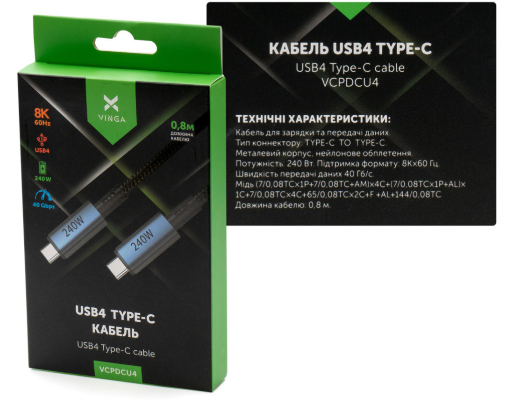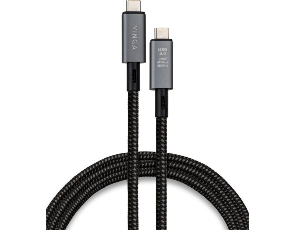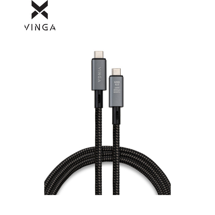 Дата кабель USB-C to USB-C 0.8m USB4 240W 40GBps 8K60Hz Nylon Vinga (VCPDCU4)