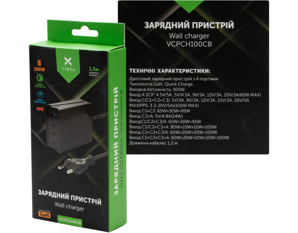 | Встречайте зарядное устройство Vinga GaN 100W PD+QC 3C1A ports 1.2m Wired Charger (VCPCH100CB) - идеальное решение для тех, кто ценит универсальность и мощность в компактном дизайне. Это устройство гарантирует быструю и эффективную зарядку благодаря высокой выходной мощности в 100 Вт и максимальному выходному току 5 А. Его многофункциональность подтверждается совместимостью с различными устройствами - от ноутбуков до TWS наушников, геймпадов, экшен-камер, смарт часов и фитнес-браслетов. Зарядное устройство поддерживает технологии быстрой зарядки Power Delivery и Quick Charge, что гарантирует мгновенное восполнение энергии разнообразных устройств. Оснащенный четырьмя выходными портами: тремя USB Type-C и одним USB, это устройство позволяет одновременно заряжать несколько гаджетов, обеспечивая высший уровень удобства и экономии времени. Это делает его незаменимым в поездках, на работе или дома. Благодаря технологии GaN зарядное устройство меньше традиционных аналогов, но абсолютно не теряет в эффективности. Оно подключается к электросети через надежный 1.2-метровый кабель, который обеспечивает достаточную длину для удобного расположения. Vinga GaN 100W - это выбор тех, кто ищет больше, чем просто зарядное устройство. Это ваш надежный помощник, отвечающий самым высоким стандартам качества и безопасности, удовлетворяющий всех, кто ценит современные технологии и скорость в каждой детали. |
