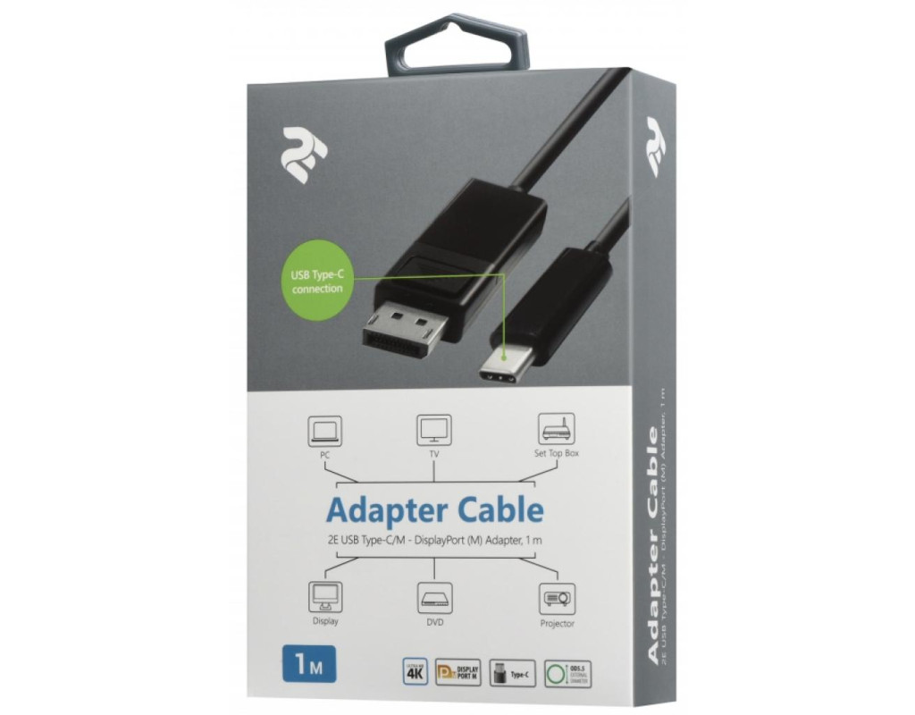 Тип коннектора 1 - USB type C, Тип коннектора 2 - DisplayPort, длина - 1 м