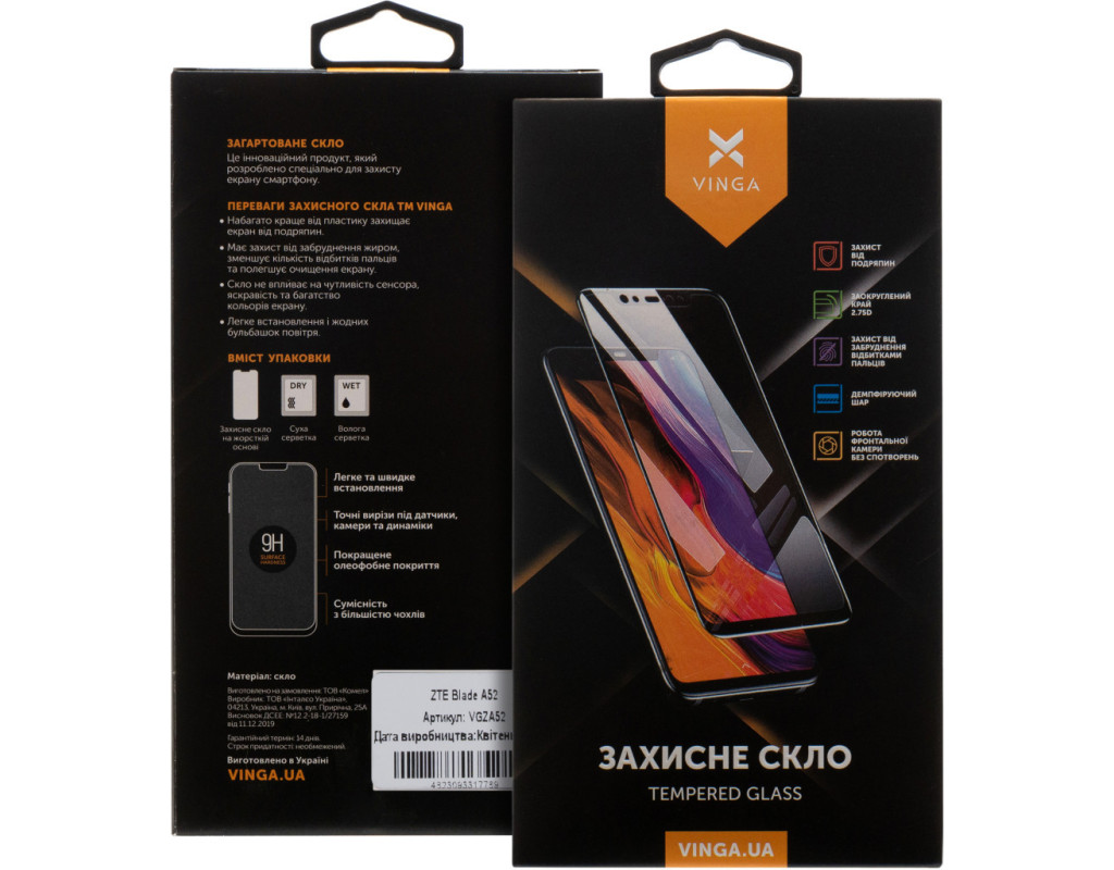 Стекло защитное Vinga ZTE Blade A52 (VGZA52)