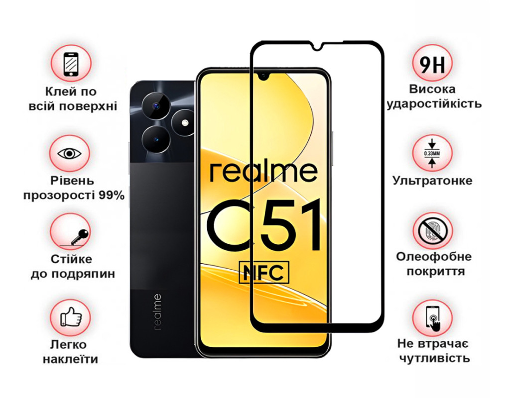 Назначение - для телефона, Вид покрытия - защитное, Совместимость с моделями - Realme C51, Количество в упаковке - 1 шт