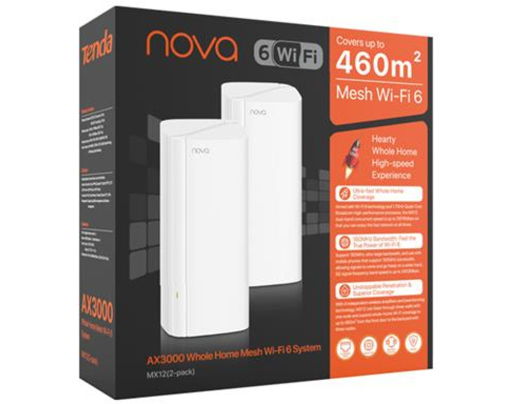 | Nova MX12 — это система AX3000 Whole Home Mesh Wi-Fi 6. MX12 обеспечивает надежное покрытие Wi-Fi на площади до 7000 футов с четырьмя независимыми беспроводными усилителями и технологией формирования луча. По сравнению с продуктами AX1800 Wi-Fi 6, MX12 оснащен технологией Wi-Fi 6 с двухдиапазонным параллелизмом до 2976 Мбит/с, что на 66% больше. Двухдиапазонный дизайн AX3000 Wi-Fi 6 и полная поддержка гигабитных портов позволяют полностью использовать ваши услуги высокоскоростного широкополосного доступа. Он имеет мощный 4-ядерный процессор с тактовой частотой 1,7 ГГц и большой объем памяти 256 МБ, что позволяет обрабатывать больше терминальных устройств. Все терминалы могут одновременно пользоваться высокоскоростным Wi-Fi, малой задержкой для онлайн-игр и плавным воспроизведением видео 4K и приложениями VR HD. Он отличается простотой установки и позволяет автоматически подключаться к сети и кнопочной сети MESH. Благодаря бесшовному роумингу по всему дому MX12 создает высокоскоростную и интеллектуальную беспроводную сетевую систему Mesh для всей семьи. |