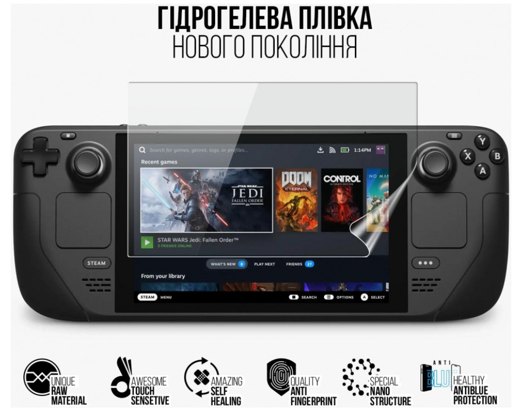 Назначение - для игровой консоли, Вид покрытия - защитное, гидрогелевая, Совместимость с моделями - Valve Steam Deck OLED, Количество в упаковке - 1 шт