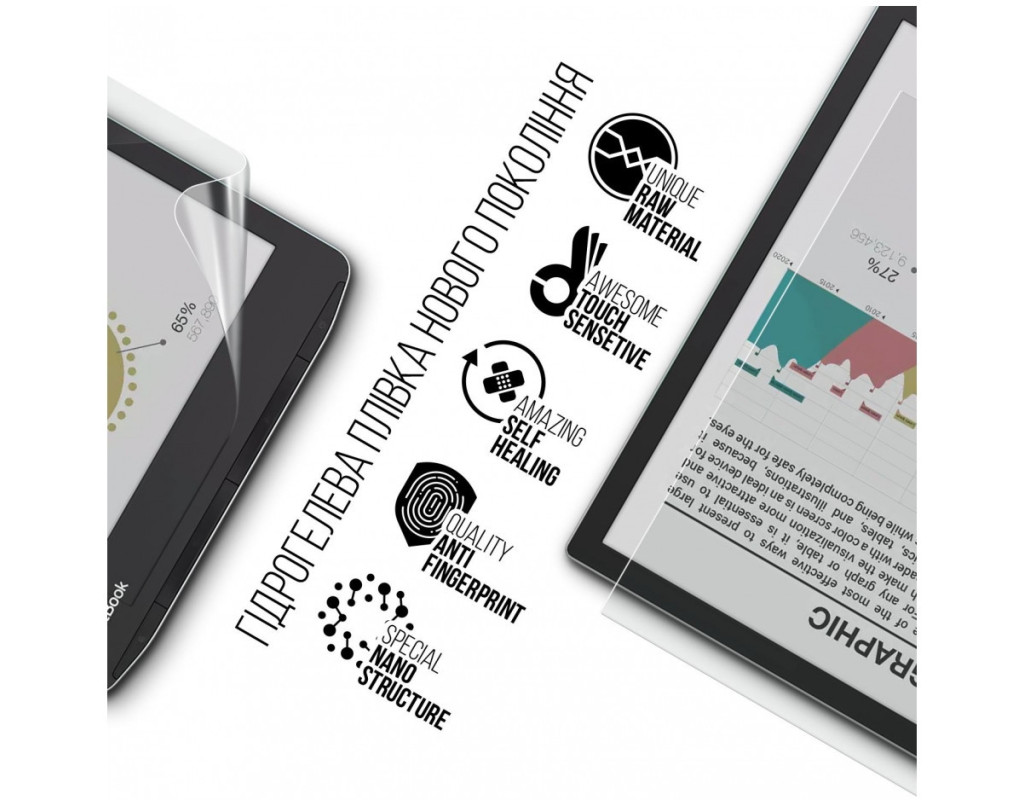 Назначение - для електронной книги, Вид покрытия - защитное, гидрогелевая, Совместимость с моделями - PocketBook InkPad Color 3, PocketBook 743C InkPad Color 2, Количество в упаковке - 1 шт