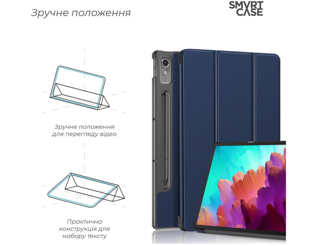 Тип - обложка, совместимость с моделями - Lenovo Tab P12, Способ крепления - обложка, способ закрытия - магнит, Материал - искусственная кожа, синий