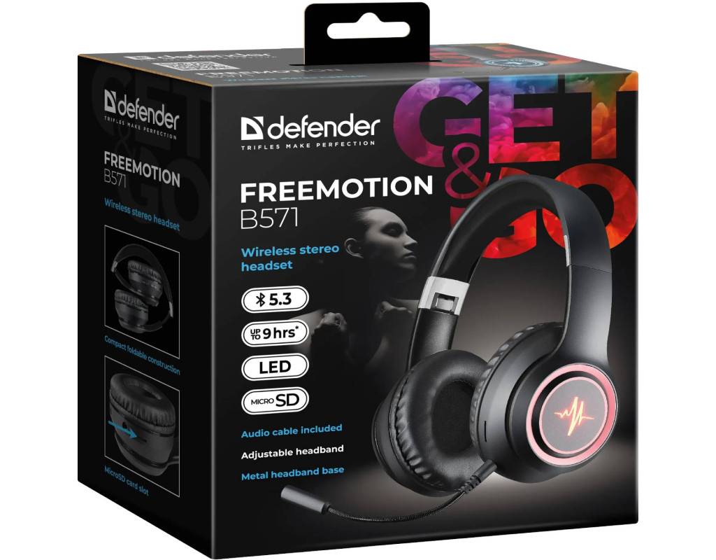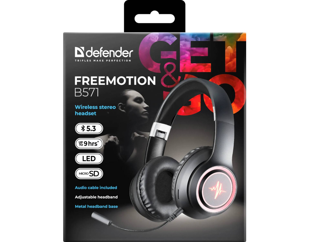 | Гарнітура Defender FreeMotion B571 Bluetooth+3,5мм, гнучкий мікрофон, LED, Black |