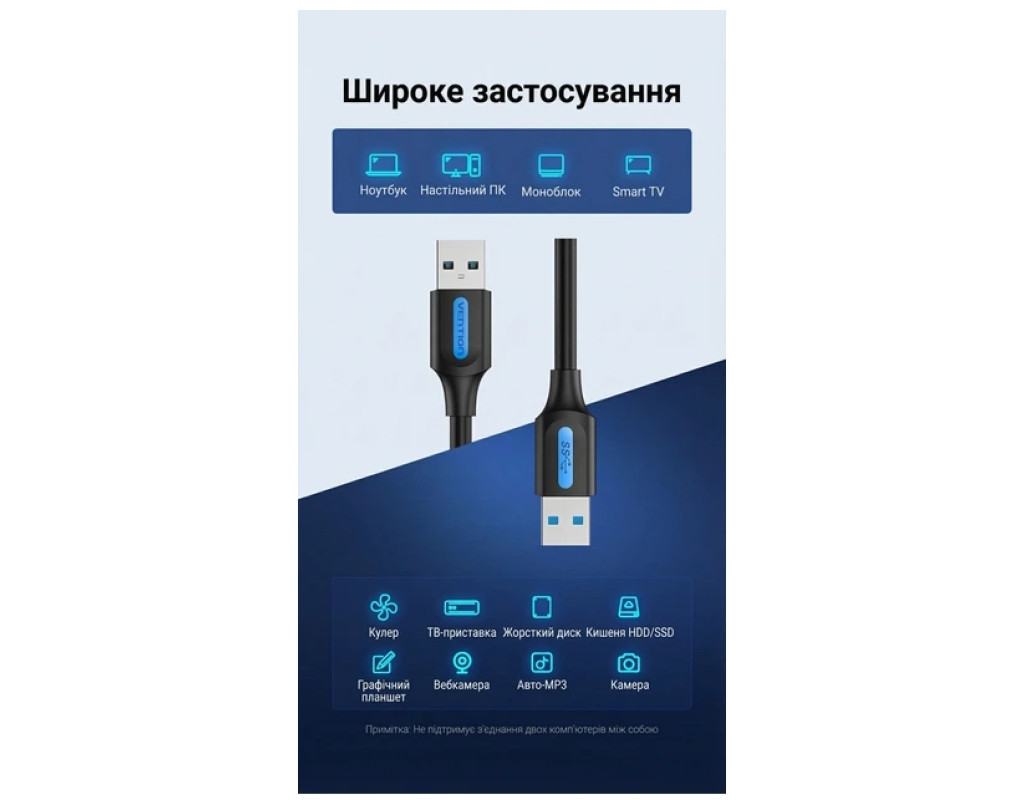 - Широкая совместимость с периферийными устройствами Кабель оснащен универсальным интерфейсом USB-A на обоих концах, что делает его совместимым с огромной экосистемой устройств, а не только с накопителями. Он беспрепятственно подключает настольные компьютеры, ноутбуки и Smart TV с различными аксессуарами, включая веб-камеры, автомобильные MP3-системы, графические планшеты, ТВ-приставки и USB-хабы, предлагая опыт «Подключай и используй» без необходимости установки дополнительных драйверов.